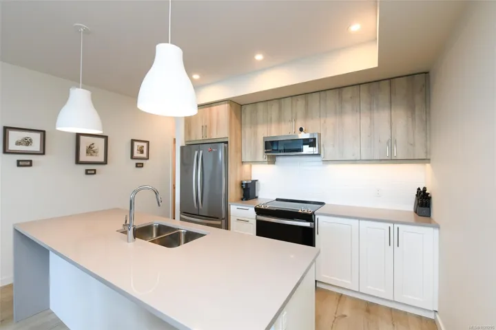 Boasting some of the most breathtaking scenery in the area, this beautifully appointed two bedroom plus den, two bathroom condo in Omnia offers an impressive combination of comfort and style. Ideally situated just across from Campbell River’s scenic sea walk and only moments from the shoreline, the thoughtfully designed layout places the main living space and primary suite at the front to fully capture sweeping views of the ocean and mountains. The open concept design enhances the sense of space, while the covered balcony is uniquely positioned without shared privacy walls, creates a peaceful spot to relax and take in the sunrise. Inside, modern finishes and meticulous upkeep are evident, giving the home a move in ready feel!