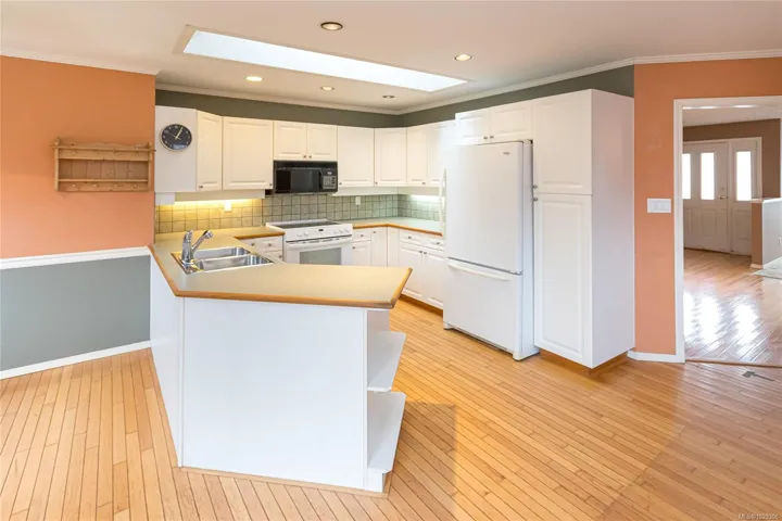 NEW PRICE! Bright rancher on a beautifully landscaped 12,000+ sq ft lot in Sidney! This 3 bedroom, 2 bathroom home backs on to green space and is ideal for families, down-sizers, or anyone looking for the convenience of one-level living. Inside, you’ll find oak floors, skylights throughout, a spacious living room, generous family room, and a primary bedroom complete with a walk-in closet and ensuite bathroom. Additional features include a heat pump, crawlspace for storage, and a double car garage. Step outside to a fenced backyard with a deck that’s perfect for outdoor entertaining. Fantastic location within walking distance to Tulista Park, Iroquois Park, and the waterfront!