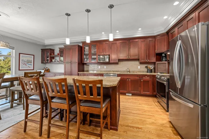 This kitchen has it all! Newer stainless appliances, granite counters, warming oven/proofer, garborator, wine fridge and additional built in custom cabinets.