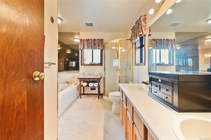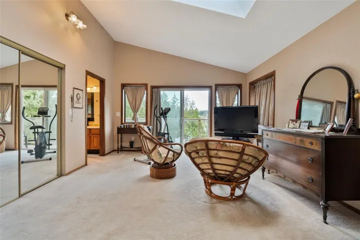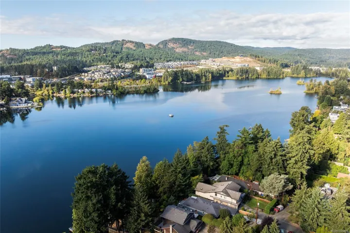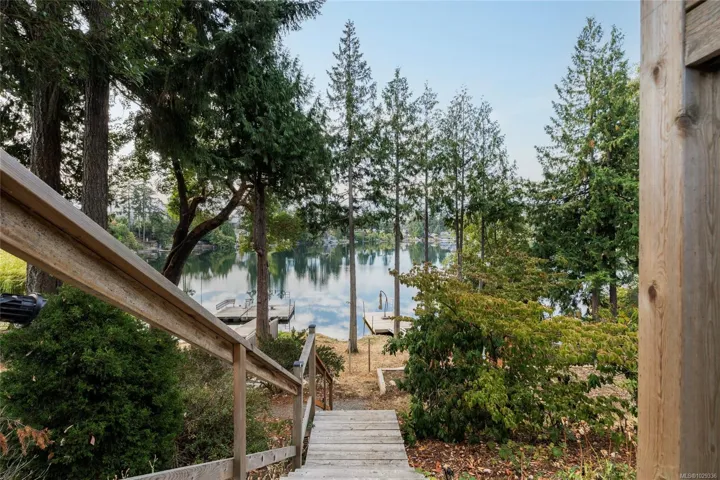 Escape to the lake with this rare opportunity. Nestled on the coveted side of Langford Lake w/ south-facing exposure at the end of a quiet cul-de-sac, this exceptional 5BED,3BATH home(including 2ED suite)offers 3,367 sqft of living space on an 11,630 sqft lot. Enjoy direct water access from the landscaped, 3-tiered backyard—complete w/irrigation, storage cabana for your water toys & private, updated dock where you can swim, paddle, or take in breathtaking sunsets. Inside, the main level features a cozy living room w/wood-burning fireplace, a bright kitchen w SS appliances, ample counter space & cabinetry & eating area that opens to patio w/ seamless glass railings—perfect for morning coffee. Retreat to the spacious upper-level primary suite (427 sqft) w/walk-in closet, sitting area, private balcony & ensuite bathroom. Two additional bedrooms, a flexible rec room complete the home, while the spacious 2BED suite w/shared laundry provides flexibility for extended family or rental income.