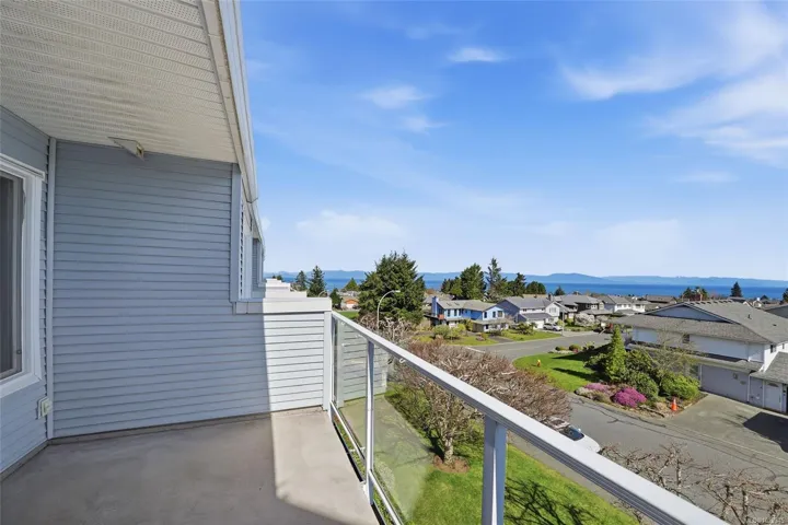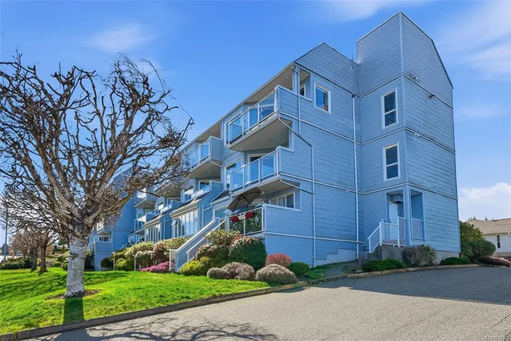 Welcome to 208-6231 Blueback Rd! This top-floor penthouse in Building A offers stunning ocean views of the Winchelsea Islands & Coastal Mountains across the Georgia Strait. Being the largest floor plan in the building, this unique two-level unit features 2 bedrooms + den, 1 bathroom, skylights, a spacious entry storage area, & a second walk-in closet in the primary, ideal for a home office, added storage, or flex space. Enjoy a private balcony plus direct access to the shared rooftop patio (one of only 8 units with this access). This unbeatable North Nanaimo location is just minutes to shopping, restaurants, schools, all amenities, & direct access to Blueback Beach at the end of the street. Move-in ready with a fresh layer of paint & excellent potential to update & add value over time. Strata allows pets & rentals with no age restrictions. Includes 1 parking stall & in-suite laundry. Amenities include a rec centre, gym, games room& bike storage. Book your showing today!! Data apprx.