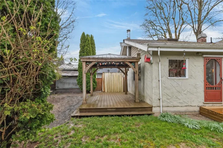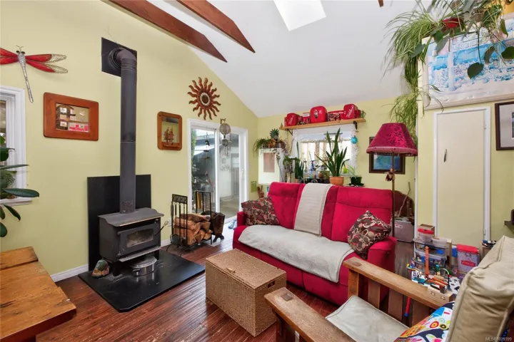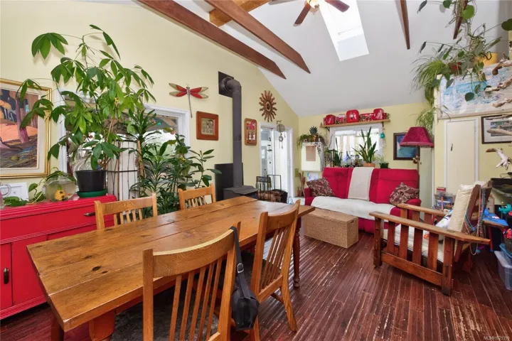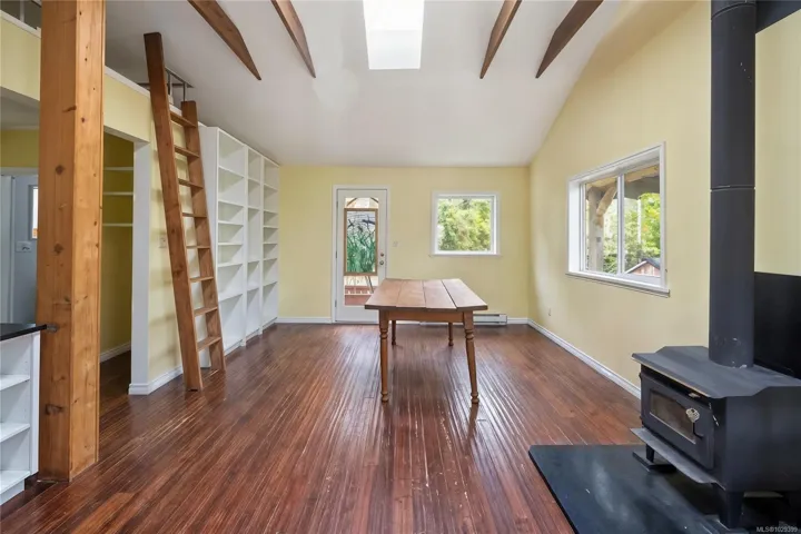 Charming centrally located cottage-style home offering 2 bedrooms plus a cozy loft-style sleeping space. The living room features vaulted 12-ft ceilings with a beautiful exposed wood beam, creating a bright and inviting atmosphere. Hardwood floors with natural character run throughout, complemented by a classic clawfoot tub. The kitchen includes granite countertops and newer appliances. Enjoy a private outdoor setting with lush gardens that bloom in the spring and a spacious deck perfect for relaxing or entertaining. Stay cozy with the woodstove, and benefit from a maintained roof. A quaint detached workshop provides added space for hobbies or storage. Ideal for first-time buyers, investors, or retirees seeking charm, location, and potential.