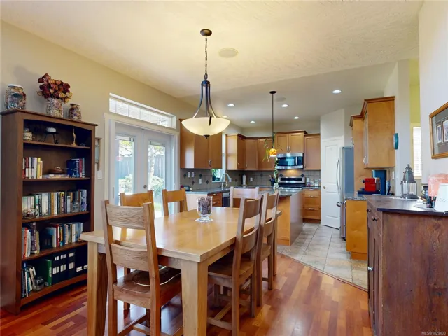 You’ll just love this immaculate 3 level Creekside home in popular Sunriver Estates! Attractive covered front verandah greets you to the spacious open concept main featuring engineered hardwood floors, living room with soaring 19ft. ceiling gas fireplace, gorgeous quartz kitchen, stainless appliances, adjacent dining with French doors open to partially covered entertainment sized deck perfect for year round BBQ’s. 3 well proportioned bedrooms up including master with walk-in and elegant 5 piece ensuite & open loft area perfect for quiet relaxation. Down offers a 4th bedroom, 4 piece bathroom and huge family/rec room, makes an ideal home entertainment space. Easily suite’d w/ sep. entry, this home has plenty of options. All this situated on a large sun-drenched .18 acre property – family friendly fully fenced rear yard, UG sprinklers. On the Victoria side of Sooke and in a choice Sunriver location – one of the very best homes that you’ll find here. Heat pump. Shows exceptionally well!