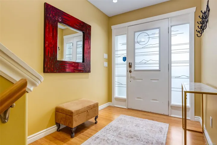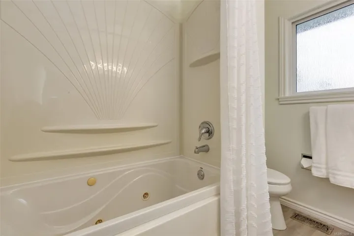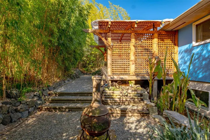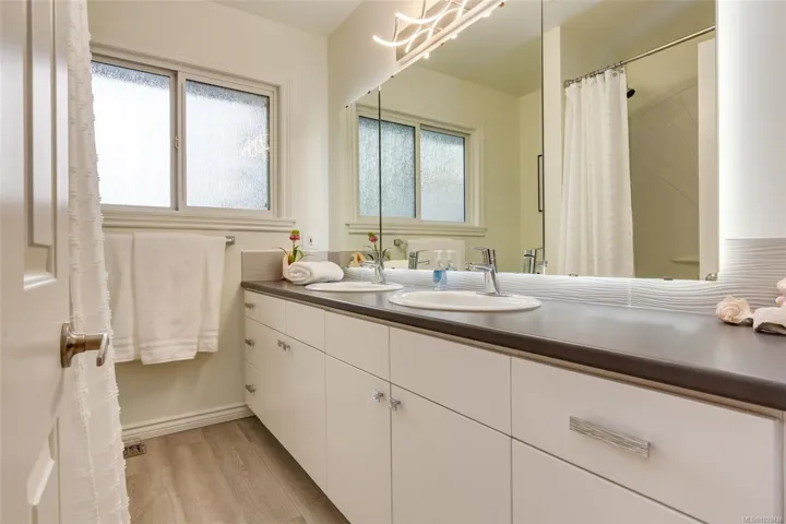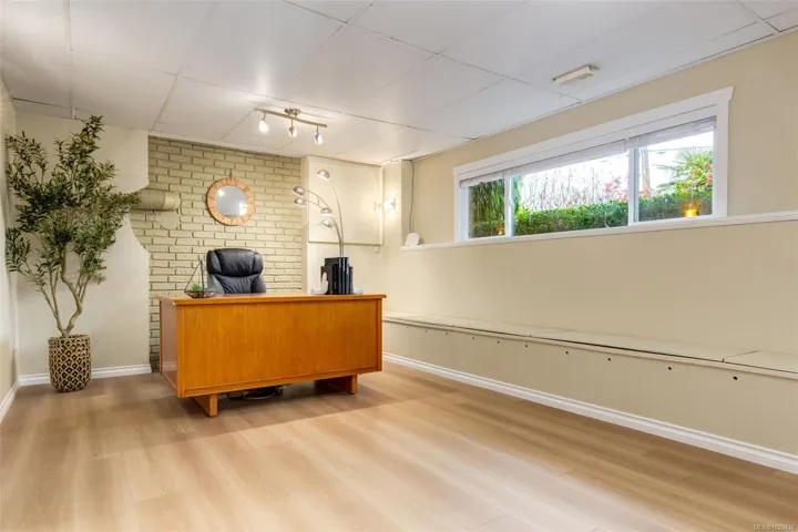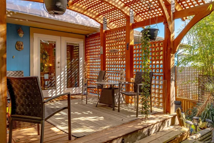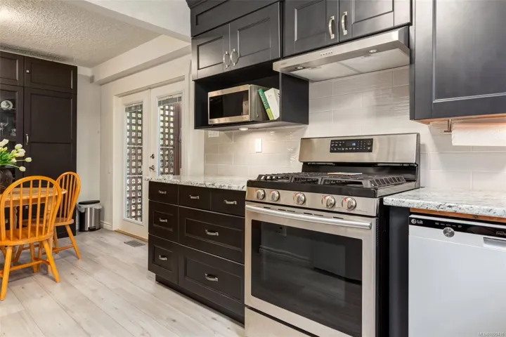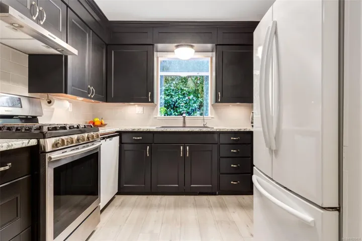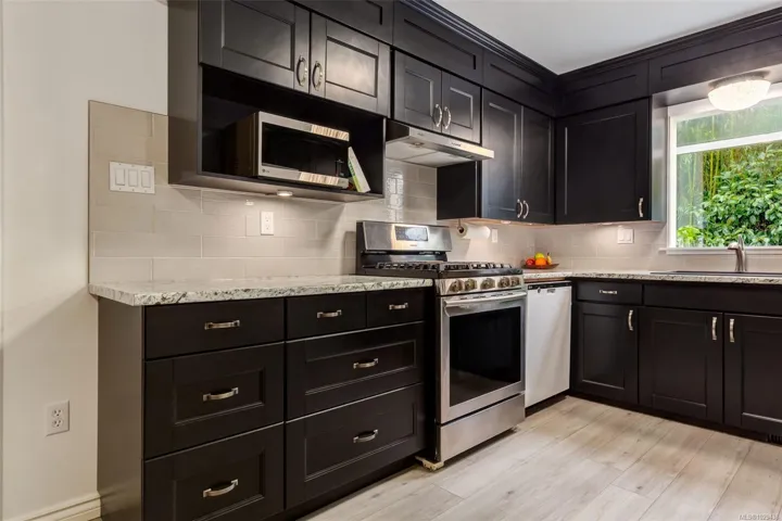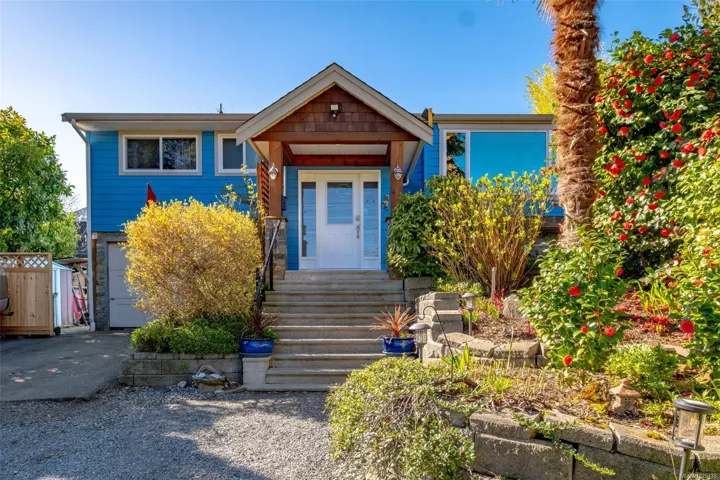 This renovated home reflects the heart of Nanaimo’s Brechin area. The yard is an oasis with a waterfall, covered deck with woodstove, and an outdoor sitting to enjoy your privacy. Inside has a foyer with 12’ ceilings; the main level is updated with contemporary paint colours, fireplace with electric insert, and wired for surround sound, in the living room. The dining and kitchen areas are cozy yet functional with b/i buffet, French doors to your rear oasis, modern cabinetry with undercounter lighting, tiled backsplash, gas range, dbl sink overlooking a unique small bay window ideal for a small herb garden. Three bedrooms on this level are complemented by remodelled 5-piece bathroom. The lower level has a family room, 4th bdm, laundry room with EE furnace, and 3 pc bathroom. Many extra features: vinyl windows, 7-year-old roof, hardi-clad exterior, generator, irrigation system in rear, and upgraded perimeter drains. All measures are approximate and should be verified if important.