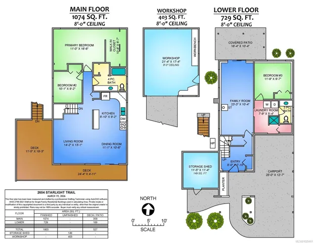 This 3 bedroom home is located in a family neighbourhood close to schools, shopping, and recreation. The yard has 2 driveways to access the 403sf detached shop and to front door. The level 10,500 sf lot is private with deep back yard. The living and dining rooms are open with the south-facing sun, slider to the wrap-around deck. A ductless heat complements this space perfectly for year round comfort. A large kitchen is bright and offers a tiled backsplash. The 11×16 primary bedroom has a large walk-in closet. A full bathroom and 2nd bedroom complete this level. The lower level features 23’x10’4 family room with laundry, bathroom and 3rd bedroom; a suite is possible. Features include vinyl window upgrade, newer roof, and gas fireplace in the family room; outside has 11×11 storage shed, covered rear patio, and a mix of trees, shrubs to accompany the great yard. All measurements are approximate and should be verified if important.