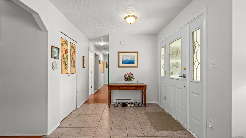 Welcome to easy, single level living in the desirable Puntledge Park neighbourhood of Courtenay. This well kept 3 bedroom, 2 bathroom rancher offers over 1,900 sq ft of comfortable and functional space. Built in 1996, the home features a practical layout, spacious living areas, a natural gas fireplace, and a heat pump for efficient heating and cooling year round. The kitchen opens directly to a covered back patio, creating a seamless transition for everyday living and relaxed outdoor time. The fully fenced backyard is private and low maintenance, while a skylight in the bathroom brings in natural light. A double garage with additional parking adds convenience and flexibility. Set in a quiet, established neighbourhood close to walking trails, parks, and the Puntledge River, this is a well cared for home in a sought after Courtenay location.
