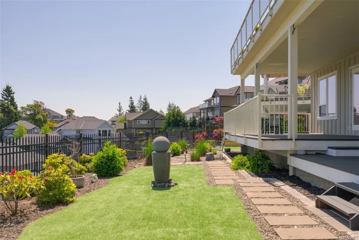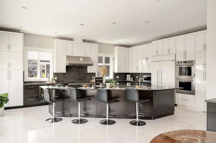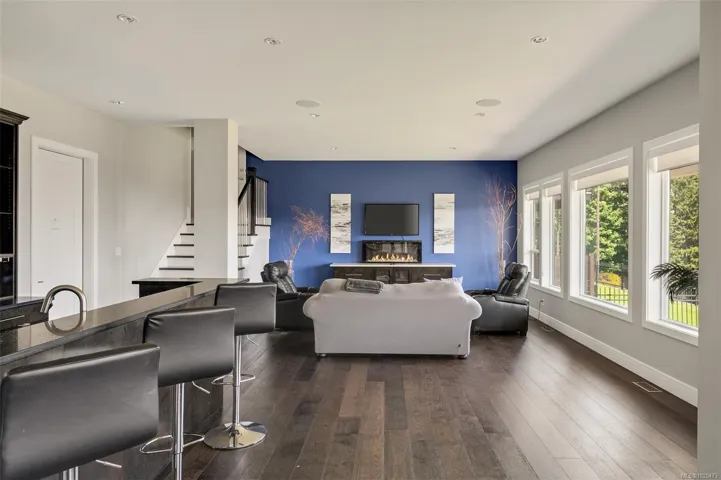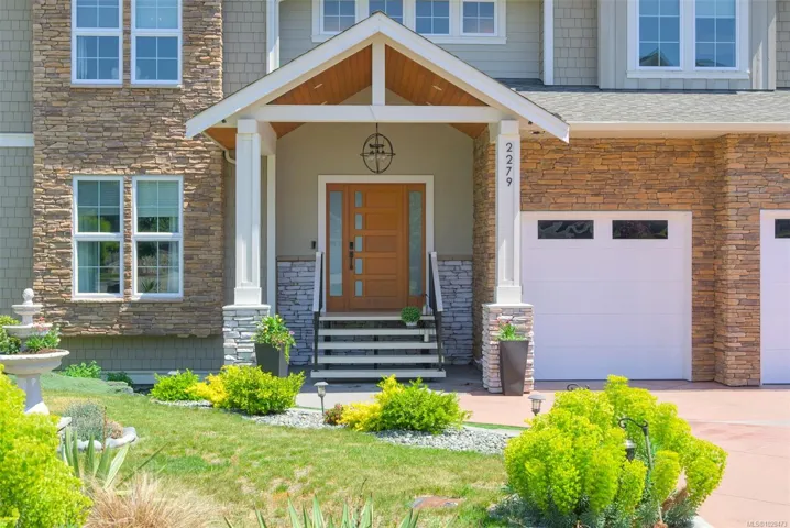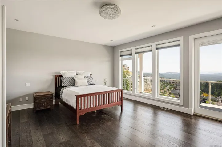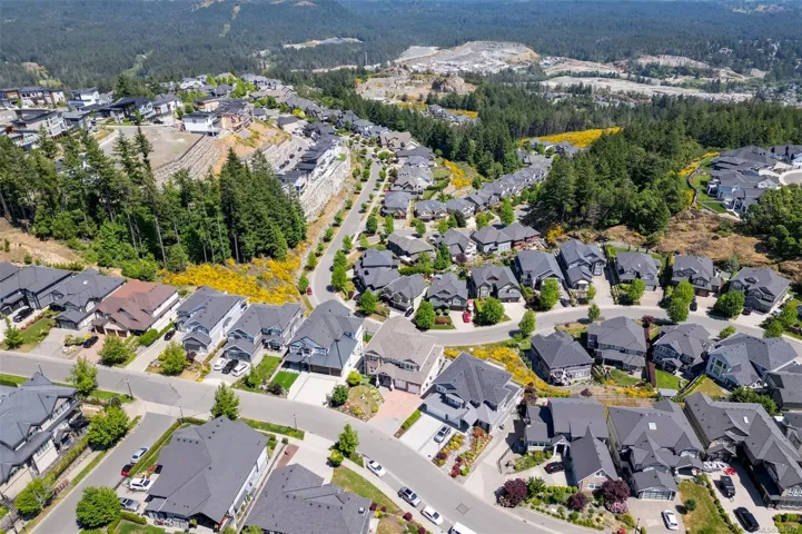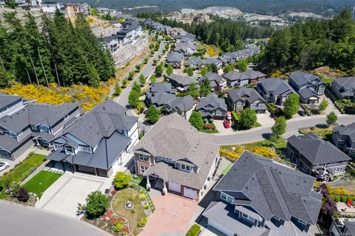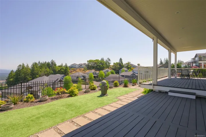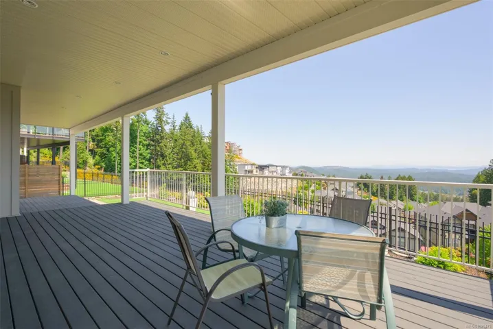 An impressive custom-crafted luxury residence on Nicklaus Ridge offering 7 bedrooms and 6 bathrooms across more than 5,300 sqft of well-designed living space. A striking entryway opens into a open-concept layout with sweeping views from every main living area. The chef-inspired kitchen showcases a large island, premium Wolf & Sub-Zero appliances, & a dedicated dining space with a built-in buffet. The spacious rear patio creates a seamless indoor-outdoor experience, perfect for entertaining while taking in stunning views of Victoria & Mt. Baker. Upstairs features 5 bedrooms, including a spacious primary with its own patio, a 5-piece ensuite, & walk-in closet. The lower level includes a media room, custom bar, guest bedroom w/ 3-piece bath, & walk-out access to a covered patio and landscaped yard. Finished with a legal 1 BED SUITE, this property is truly exceptional. Just steps to Bear Mountain Resort, close to downtown Langford amenities, and surrounded by unlimited outdoor recreation.
