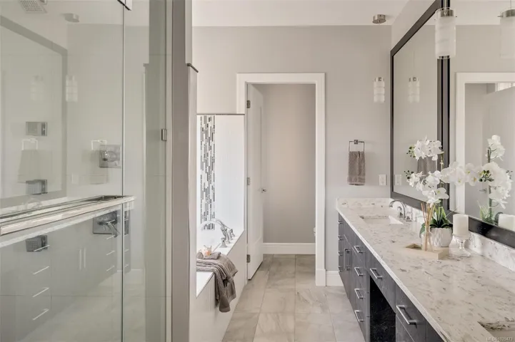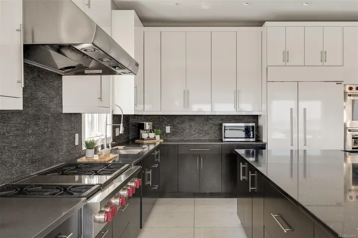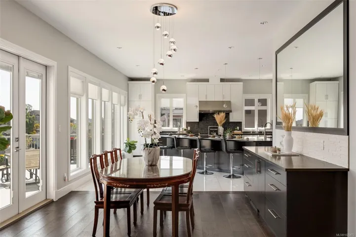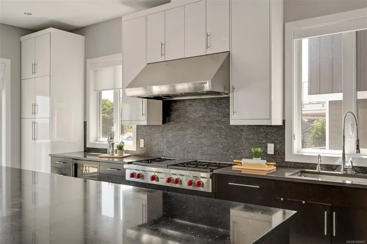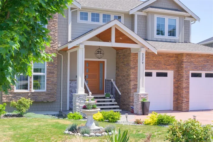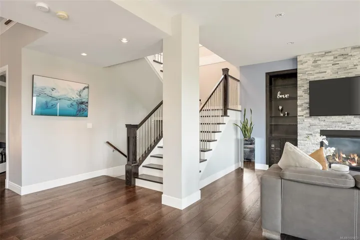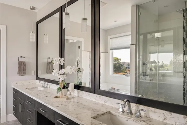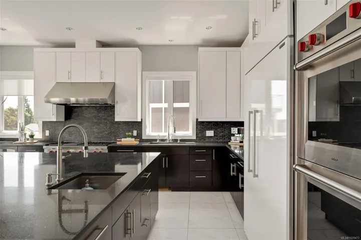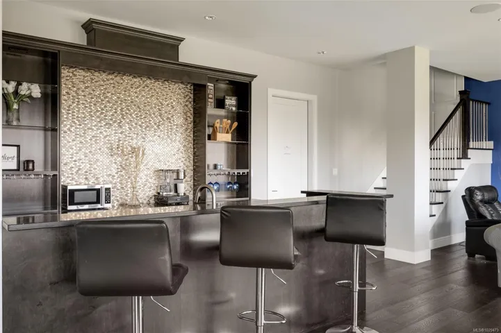 An impressive custom-crafted luxury residence on Nicklaus Ridge offering 7 bedrooms and 6 bathrooms across more than 5,300 sqft of well-designed living space. A striking entryway opens into a open-concept layout with sweeping views from every main living area. The chef-inspired kitchen showcases a large island, premium Wolf & Sub-Zero appliances, & a dedicated dining space with a built-in buffet. The spacious rear patio creates a seamless indoor-outdoor experience, perfect for entertaining while taking in stunning views of Victoria & Mt. Baker. Upstairs features 5 bedrooms, including a spacious primary with its own patio, a 5-piece ensuite, & walk-in closet. The lower level includes a media room, custom bar, guest bedroom w/ 3-piece bath, & walk-out access to a covered patio and landscaped yard. Finished with a legal 1 BED SUITE, this property is truly exceptional. Just steps to Bear Mountain Resort, close to downtown Langford amenities, and surrounded by unlimited outdoor recreation.