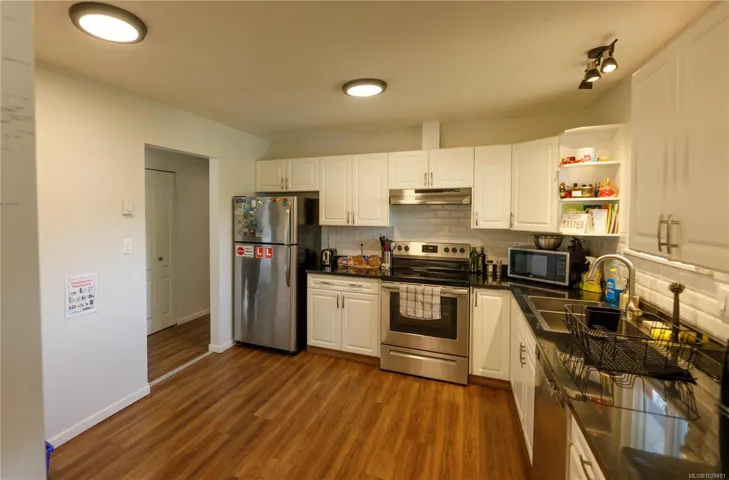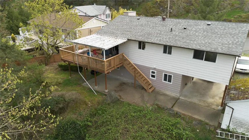 Situated just steps from Sugarloaf Mountain (one of Nanaimo’s best sunrise spots) this home is tucked away on a quiet cul-de-sac in the popular Sherwood Forest pocket of Departure Bay in Nanaimo. This 4-bed, 3-bath home offers a versatile 2-unit layout. The main level features 3 beds, 1.5 baths, a spacious south facing rear deck, and a functional layout with a separate kitchen, dining, and living area. Luxury vinyl plank flooring runs throughout, with an updated 4-piece bath and a primary bedroom with walk-in closet and 2-piece ensuite. The lower level includes a 1-bed suite with its own 4-piece bath and covered patio—ideal for family or rental income. Additional features include black granite countertops, newer washer/dryer, hot water tank (2 yrs old) , 200-amp service (2 years old), and a 30-year roof (2 yrs old). Close to Departure Bay Beach, schools, and Drip Coffee.(Measurements approximate; buyer to verify)