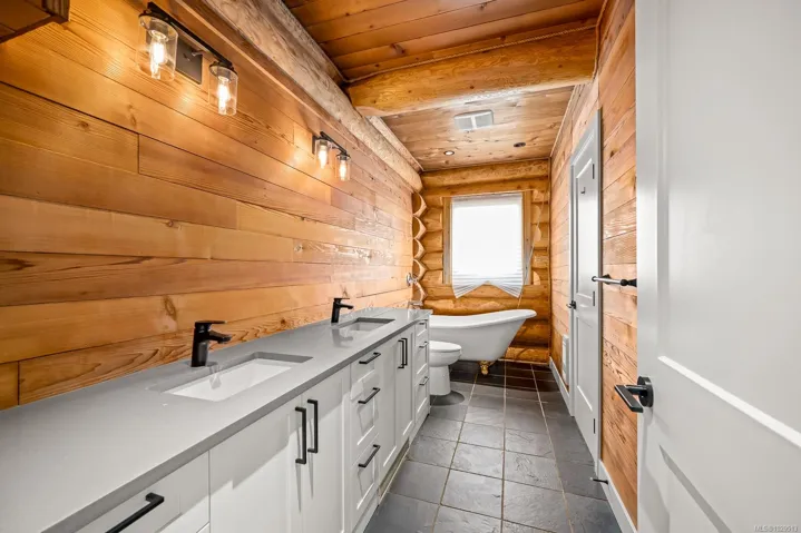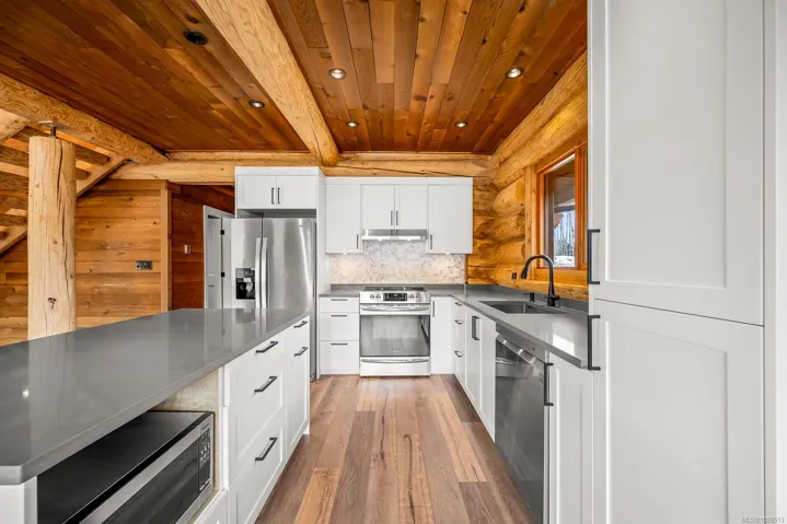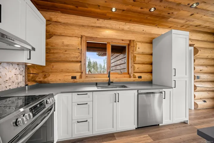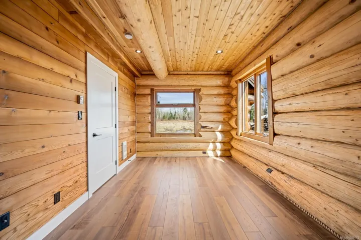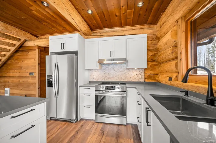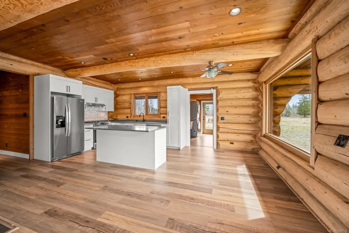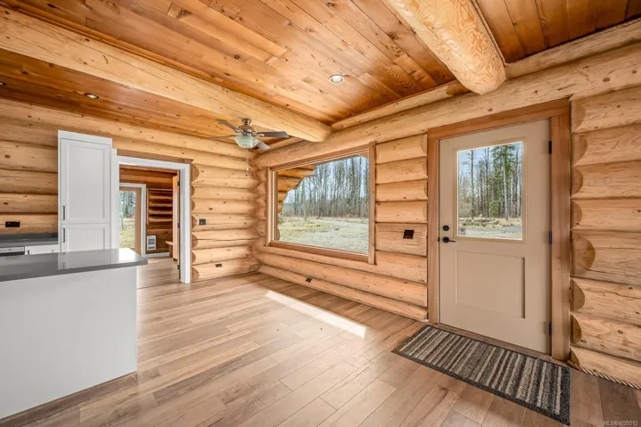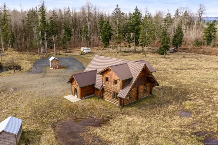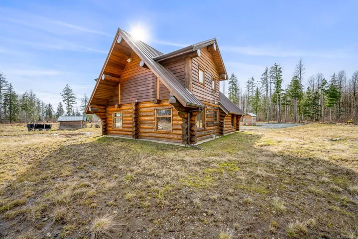 A rare and private 40 acre retreat tucked away off York Road, offering an exceptional opportunity in a truly peaceful setting. Accessed by easement, this property feels like your own hidden escape. Approximately half of the land is in the ALR and includes the stunning log home, serviced RV sites, and beautiful natural surroundings, while the other half is zoned UR with potential for a single family dwelling. Rich in character, the home showcases soaring ceilings, beautiful wood detailing, a striking staircase, cozy wood stove, and an updated kitchen with white cabinetry, quartz counters, tile backsplash, and stainless appliances. The main floor features 2 bedrooms, 1 bathroom, and a generous mud/laundry room with plenty of storage, while the upper level offers 2 more bedrooms and a second full bathroom. With a new septic system installed in 2023, metal roof, 2 RV sites with septic and power hookups, ponds, trails, and endless possibilities, this is a magical property.
