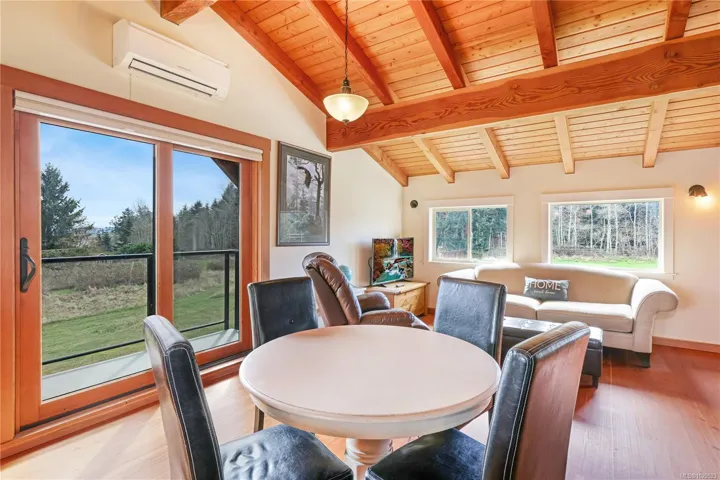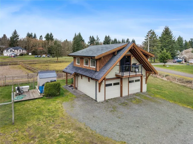 On a peaceful and inviting 1.36ac of pristine land, in a quiet cul-de-sac in the Seal Bay area, sits a 647 sq ft suite over a 2-car garage. This home has wonderful finishes with hardwood and tile throughout, prominent exposed wood beams, wood trim and a east facing balcony overlooking the parcel and all the flora and fauna that thrives on Vancouver Island. There are multiple windows to provide a natural lighting. The open suite has a partioned 4-pce bathroom. The garage has the washer and dryer. Exterior features include extra storage, fully fenced with bared wire, level, trees along the west border provides privacy. The remaining area would allow for many different visions. Beach access is a short 5 minute walk. This location is 5 minutes from Seal Bay, 15 minutes to downtown Courtenay, 12 minutes to the airport and 35 minutes to Mt Washington. Find yourself in a fantastic neighbourhood in the beautiful Comox Valley. Wake up to unparalleled lifestyle and enjoy our island time.