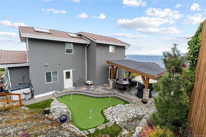 backyard was completely redone with entertaining in mind. Watch for whales under your impressive gazebo, putt on your very own golf green and then finish the day next to your gas firepit overlooking the Straight of Georgia. Must be viewed to really appreciate the specialness of this one-of-a-kind property.