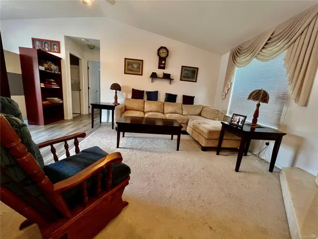 Just move in and enjoy this immaculate, easy-care home at the popular Songhees Retirement Park! This beautiful 2 bedroom, 2 bathroom residence features soaring vaulted ceilings in the living room, a cozy gas fireplace, and a spacious kitchen with loads of cabinetry. The thoughtful layout includes a separate dining room, a comfortable family room, and excellent bedroom separation — the master suite boasts a full ensuite for added privacy. Recent upgrades include new laminate flooring in the kitchen, custom concrete patios, and quality fencing. Outside, indulge in your very own grape vine and tasty peach tree — a charming touch of nature at your doorstep. The vibrant community offers organized card games, billiards, and a well-appointed clubhouse complete with guest accommodation. Perfectly located close to town and just steps from shopping at Admirals Walk, everything you need is within easy reach. This is effortless retirement living at its absolute finest!