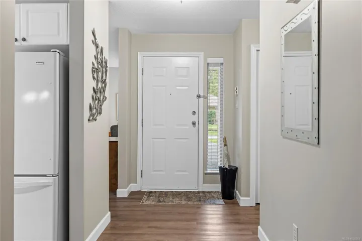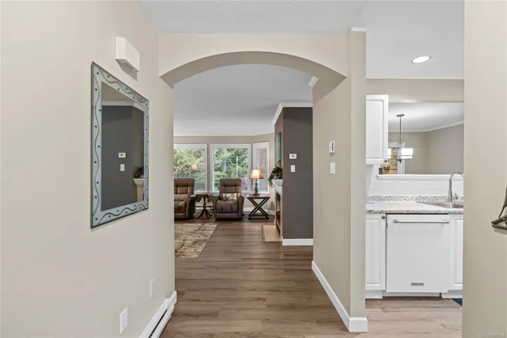 Tranquil living backing onto park land. Experience the perfect blend of comfort and convenience in the nicely updated 1,379 sqft. patio home. Located in a meticulously maintained 55+ community, this residence offers a peaceful retreat just minutes from the vibrant heart of Qualicum Beach. This home features 2 spacious bedrooms, 2 full bathrooms and a family room perfect for hobbies or a home office. Step onto brand-new vinyl plank flooring that flows throughout most of the home, freshly painted all around and complemented by a cozy gas fireplace in the living area. The functional kitchen has new countertops with a ceramic backsplash. New vinyl windows were installed in 2023. The back patio has its own awning for shade on those sunny days. Minutes away from Qualicum Beach’s shops, local restaurants and sandy shores. No need to pay for external storage, the strata provides a dedicated spot for your RV or boat.