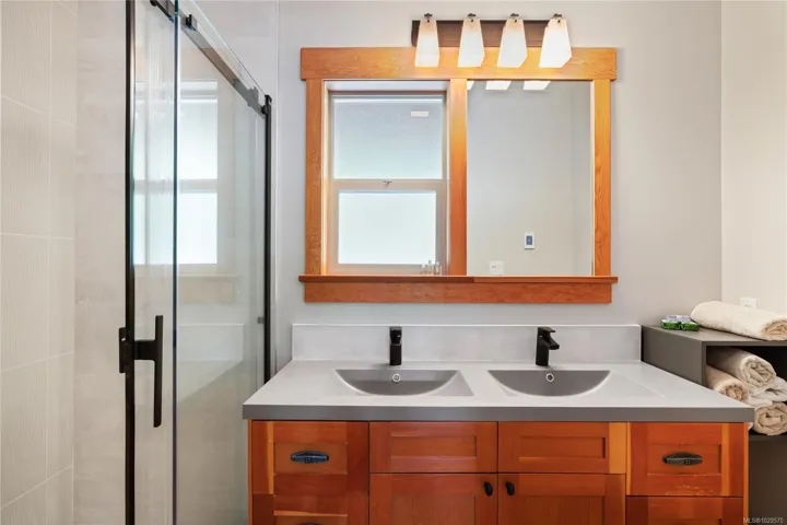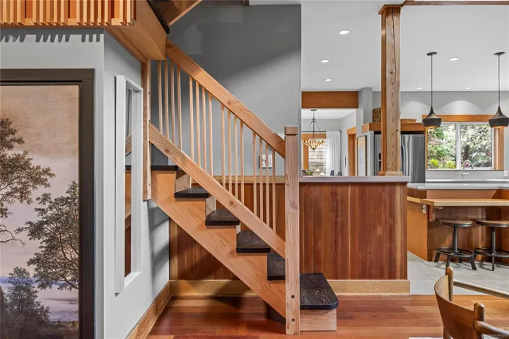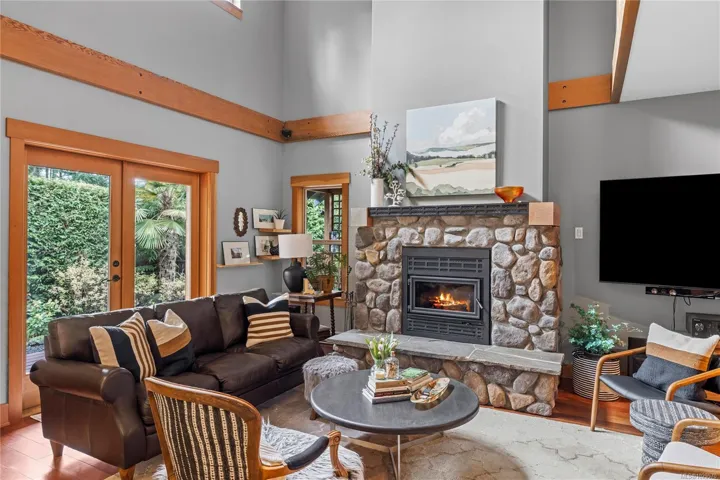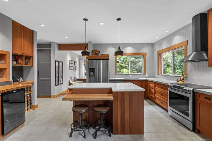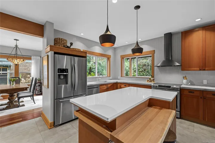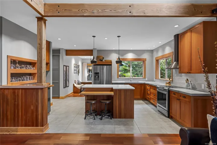 Westcoast impeccably designed rancher in a quiet & private location. Gorgeous Great Room with soaring ceilings, Fireplace, custom finishes & extensive use of fir. Amazing Chef’s kitchen with heated floors, quartz & concrete counters, Induction stove, dedicated bar, custom cabinetry & tons of storage with built in pull out pantries. Adjoining dining room is intimate & bright with French Doors to an open deck. Primary Bedroom Suite is serene & ensuite bathroom features walk in shower, heated floor & dbl sink. 2 guest bedrooms-1 on main & 1 on loft level & a lovely main bathroom completes this superb layout. Detached garage & guest house has 3rd bath & 4 bedrm (or use it as a gym or artist studio). Enjoy approx 900 sq ft of deck & Amazing landscaped yard. Complete with 9 palm trees & hot tub, outdoors is an Oasis. This secluded property backs onto hectares of Fairwinds trail system. Central location, Fairwinds Golf, Gym, Pool & Marina are close by & 20 min to N. Nanaimo
