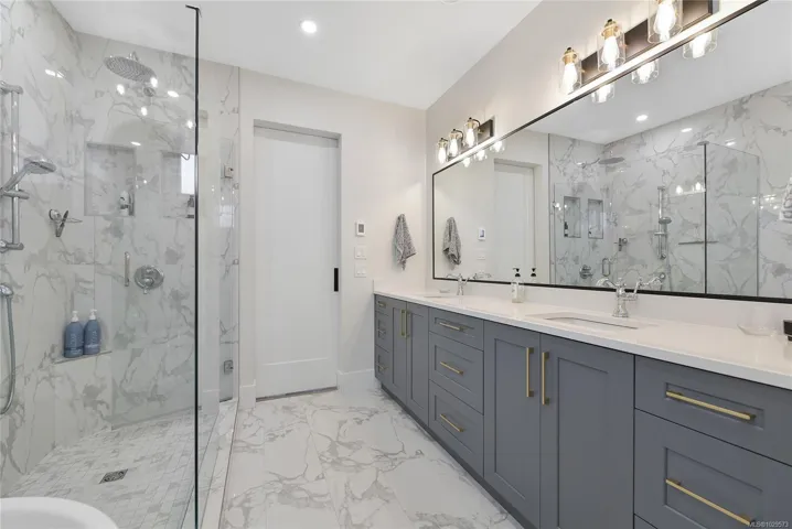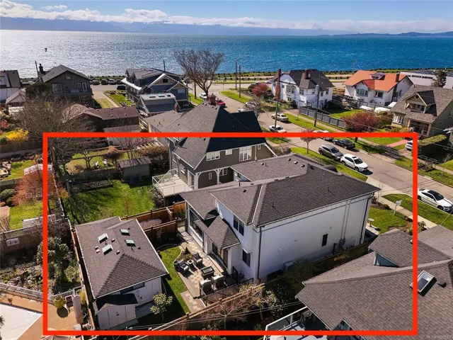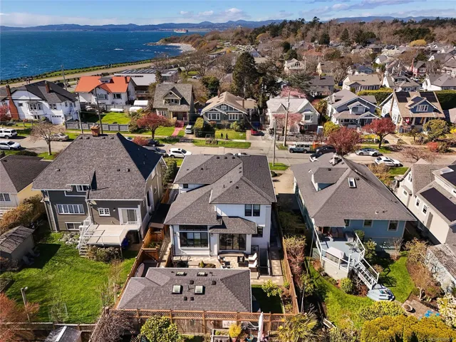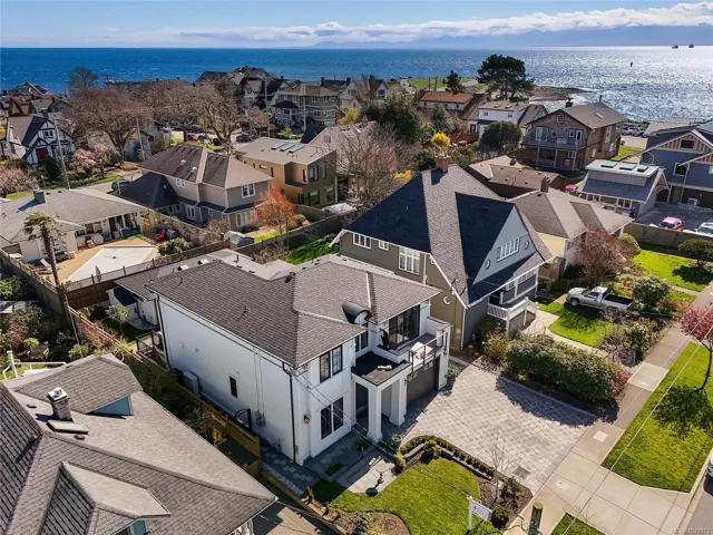 Fairfield Custom home just 4 doors to scenic marine Dallas Road! So many bespoke features to list including great room with sunlit living room with 12 foot overheight ceiling, built-ins, feature fireplace all surrounded by large windows, gourmet kitchen with island, professional appliances and pantry, office all on main. 3 bedrooms up including primary with luxury ensuite, abundant closet space and deck with ocean views plus additional bedrooms. Basement with rec room/home theatre and storage. Bonus detached carriage house offering its own private entrance and laundry. Peerless location proximate to Clover Point, Ross Bay, Beacon Hill Park, The Cook Street Village and downtown. A rare offering of space, recent construction, revenue suite and location.