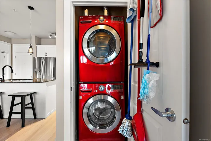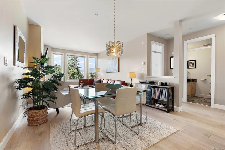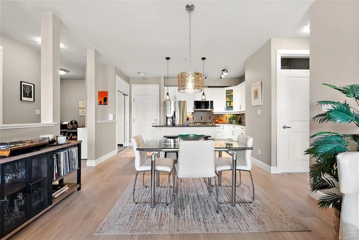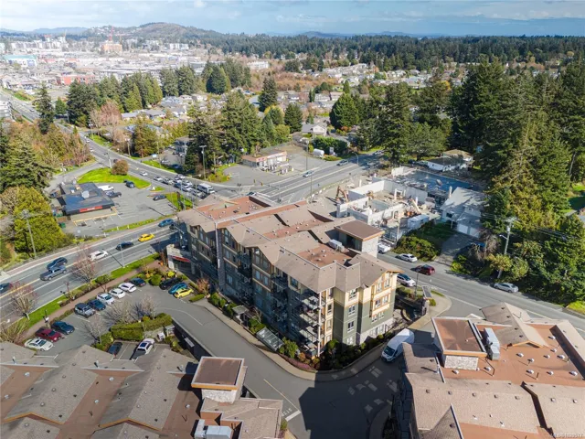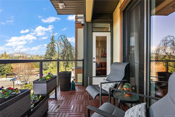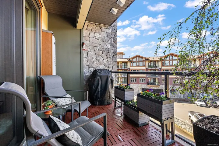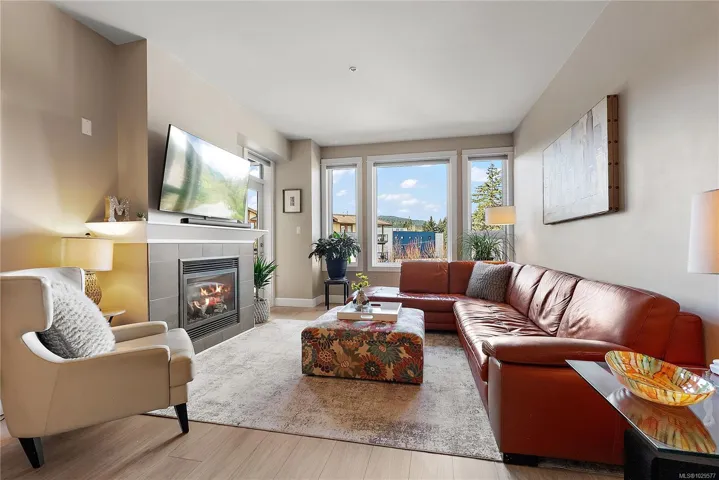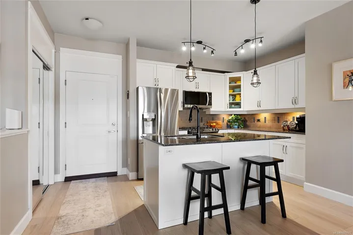 Welcome to Waterstone — a vibrant, community-focused development offering a modern, easygoing lifestyle. This 2 bed, 2 bath + den condo features an ideal floor plan with soaring 9’ ceilings and new waterproof Lifeproof laminate flooring. The kitchen is well-appointed with granite countertops and a gas range, with matching granite carried into both bathrooms for a cohesive feel. The spacious primary suite offers a spa-inspired ensuite with separate tub, shower, and walk-in closet. Enjoy west-facing balcony views of Glen Lake and the Sooke foothills, a natural gas BBQ hookup, and building amenities including pool, gym, and sauna. Pet-friendly (up to 2 dogs, 2 cats, or 1 of each, no size limits) and just steps to shops and transit — book your viewing today!