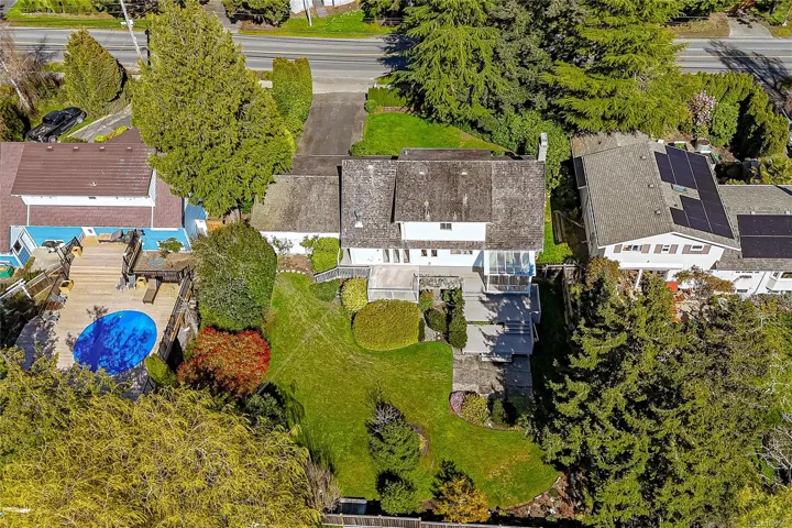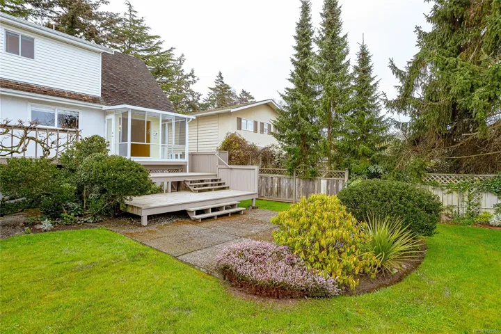 Open Sat 2-4 April 11th. Located in the highly sought-after Cadboro Bay area, this spacious 3,000 sq ft family home offers an ideal layout on a stunning 11,000 sq ft lot surrounded by mature trees, lush gardens, and beautiful landscape both front and back. Main level has a bedroom, bright kitchen, living and dining areas, two piece bath and laundry. A newer glass sunroom provides the perfect space to enjoy morning coffee or unwind in the evening while over looking the sun filled back yard with full southern exposure. Upstairs offers three generous bedrooms, two with walk in closets. The primary suite includes a full bathroom with soaker tub, plus additional full bath for the kiddos! The lower level presents excellent potential for a suite with a large family room with bar, full bathroom and separate entrance plus loads of storage! Just minutes to Caddy Bay beach, Gyro park, cafe, pub, grocery store!. Surrounded by excellent schools, a vibrant community and an excellent lifestyle!!