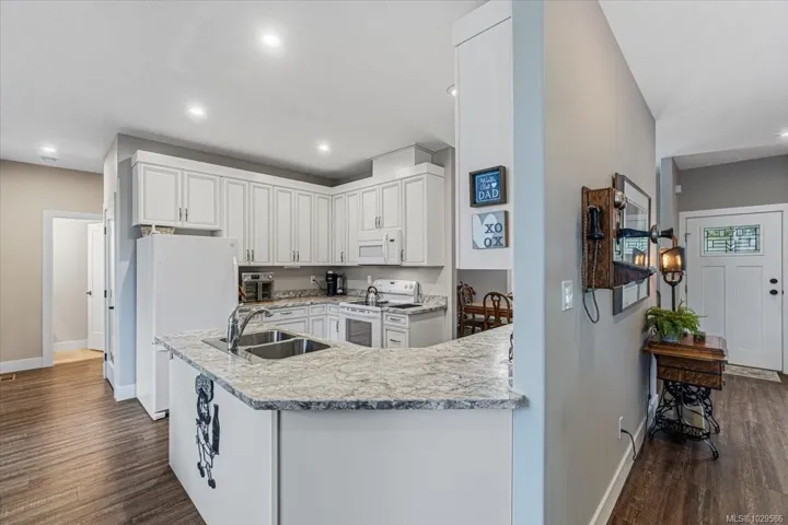 Beautiful, well maintained 2016 rancher offering 3 bedrooms, 2.5 bathrooms, plus a den in a bright, open concept layout with 9’ ceilings and vinyl plank flooring throughout. The spacious primary suite features a cozy sitting area, while the versatile den is ideal for a home office, hobby room, or guest space. Enjoy year round comfort with an efficient furnace and heat pump, and great curb appeal with the Trimlite exterior lighting package. Durable Hardi siding and gutter guards add peace of mind. The sunny backyard includes raised garden beds, shed, a sprinkler system, and a partially covered patio perfect for relaxing or entertaining. Ample storage with an over height crawl space. The 3 car garage offers room for vehicles, toys, and RV parking. Minutes from the ocean, this home offers modern comfort and easy coastal living.