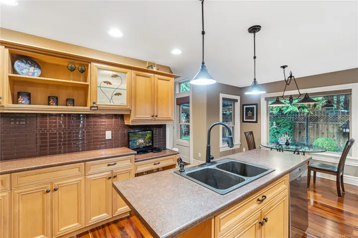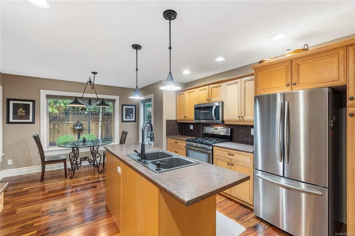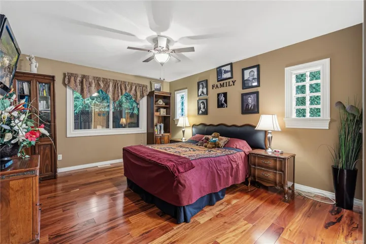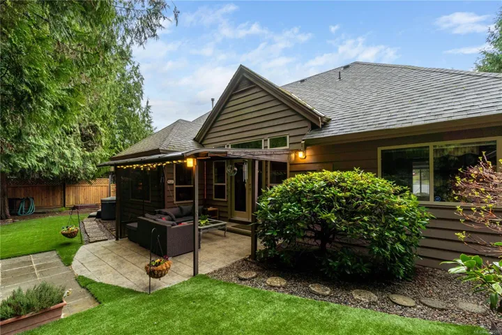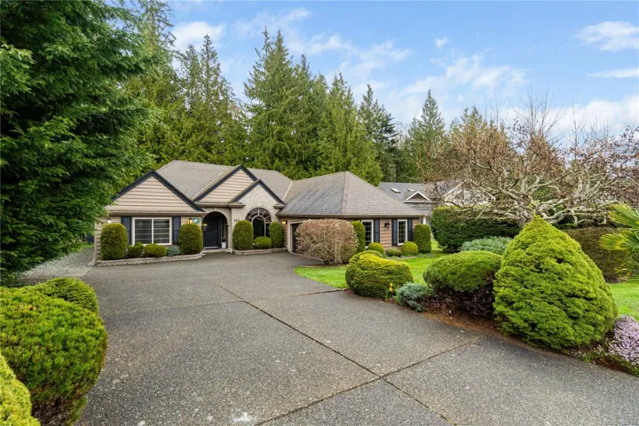 **OPEN HOUSE SAT APRIL 18TH 11AM-1PM** Tucked on a quiet cul-de-sac in the desirable Evergreens subdivision, this 1,747 sq. ft. Qualicum Beach rancher offers exceptional value. The bright kitchen features an island, pantry, eating area, under-cabinet lighting, tile backsplash, gas cooktop & SS appliances. Enjoy a separate dining room w/ French doors, stunning hardwood floors throughout, a spacious great room w/ gas fireplace, 10 ft. ceilings, detailed moldings, & access to a covered glass patio. The home offers 2 bedrooms w/ 4-pc ensuite cheater access, a 2-pc guest bath, & a large primary suite w/ a soaker tub, separate shower, and his-and-hers w/in closets. Updates inc. custom window coverings, newer hot water tank, and updated plumbing. The backyard backs onto green space, creating a private park-like setting, complete w/ artificial turf for low maintenance & a hot tub. Add’l features include in-ground sprinklers, RV parking, and a 14’x8′ shed. This home is move-in ready.