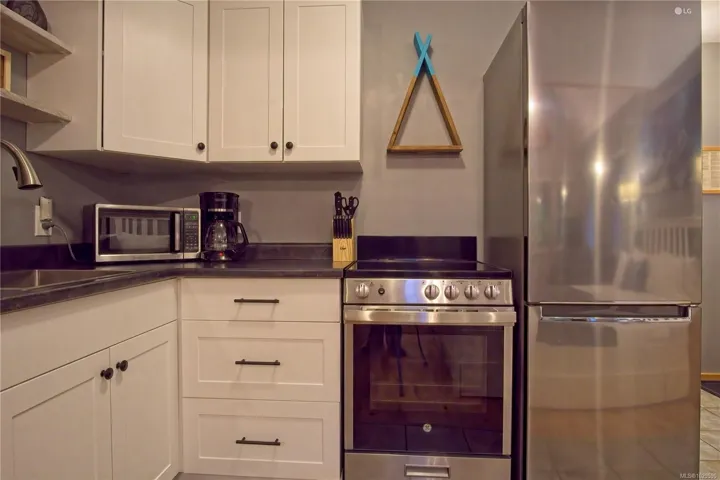Welcome to your cozy West Coast retreat at Reef Point Cottages in the charming seaside community of Ucluelet, BC. This charming studio suite features modern lighting, a refreshed kitchen with updated appliances, a 3-piece bathroom, bonus storage loft, and stylish décor throughout. Thoughtfully furnished for comfort, functionality, and charm, the space captures a true West Coast vibe. The cabin comfortably sleeps two adults, with a pull-out couch for an additional guest. Step out onto the back deck and enjoy the peaceful sounds of nature—perfect for morning coffee or an evening unwind. Just a short stroll away, Terrace Beach offers a family-friendly setting for beachcombing and play, while the Wild Pacific Trail is nearby for scenic coastal walks. Pacific Rim National Park is only a 15-minute drive away for surfing and outdoor adventure. This turn-key cabin is ideal as a personal getaway or an income-generating vacation rental. Please inquire for more details or to arrange a viewing.