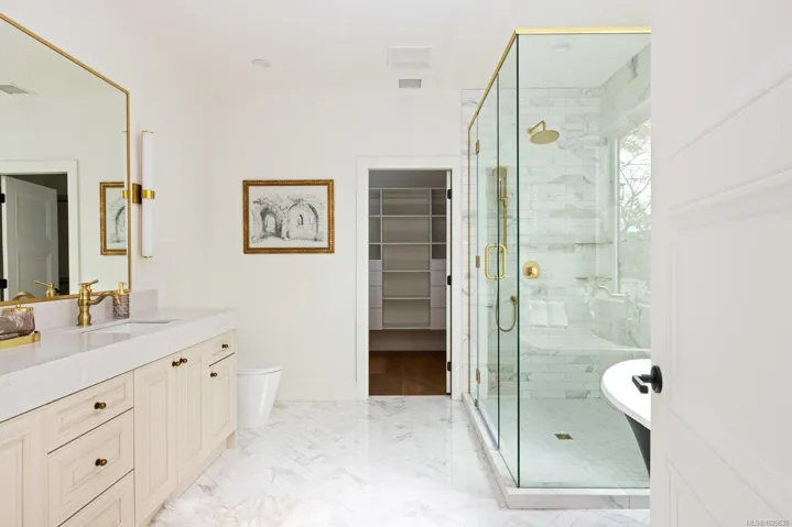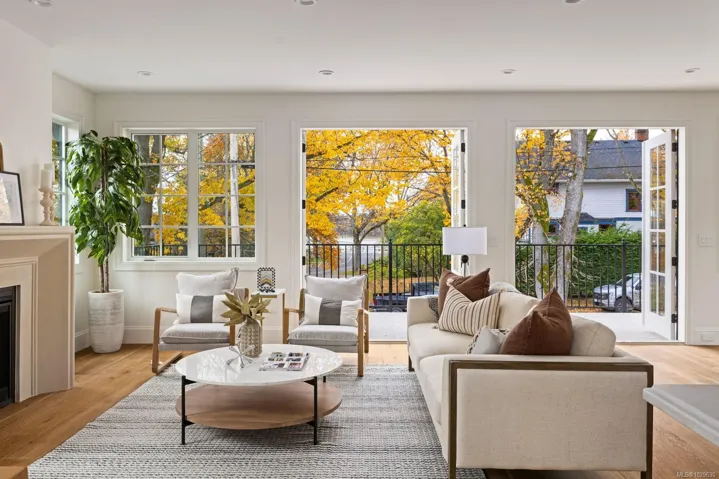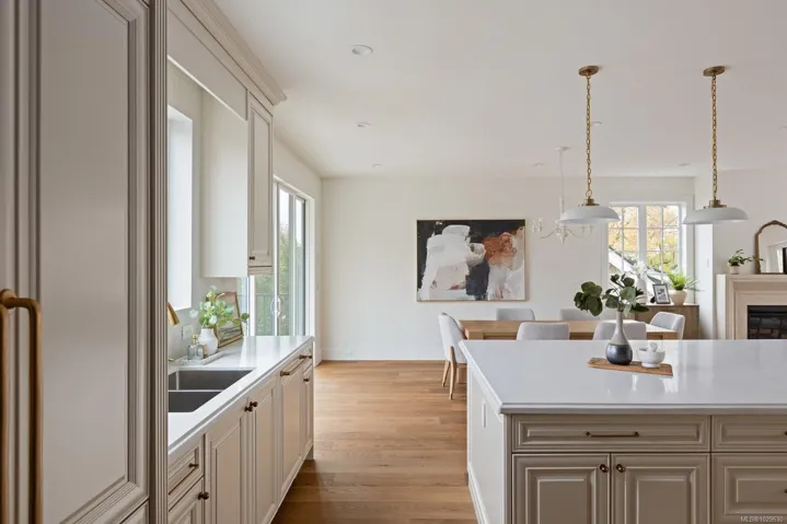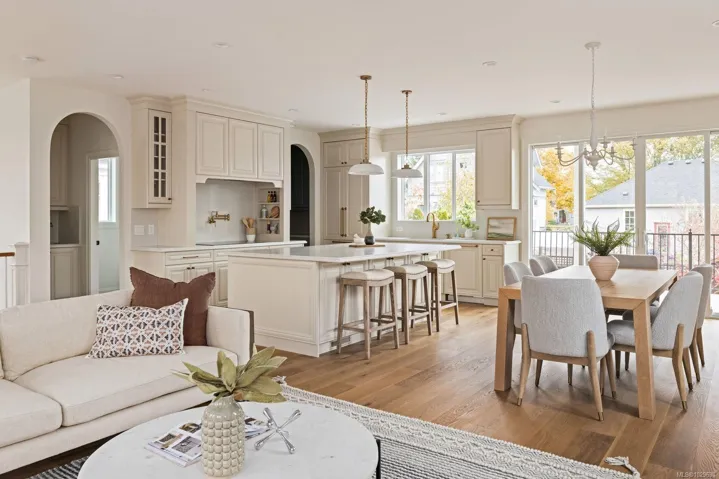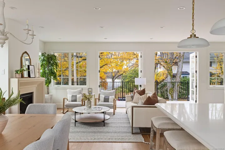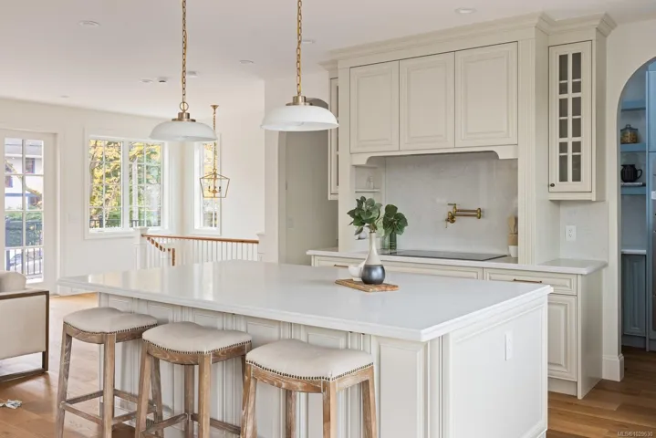 Situated in coveted Fairfield, this brand new home is steps away from the Dallas road waterfront & beach access. This stunning home boasts gorgeous curb appeal & unique French colonial architecture. Offering 3000+ sq feet of luxurious living space with water views, this 4-bed, 4-bath home includes a separate suite. The amazing layout offers open concept living area on the top floor with large windows that flood the space with natural light. The living room features French doors that open to a spacious balcony with views. The chef’s kitchen is a showstopper with custom cabinets, quartz countertops, a walk-in pantry, double wall ovens, & a wet bar with wine fridge. The primary suite includes a 5pc ensuite & walk-in closet. Two additional beds share a full 4-piece bath & a laundry room complete this floor. The lower level has a media room with a wet bar and wine fridge, plus a 3-piece bath, & a separate suite. Priced to sell. Click on video link for visuals.