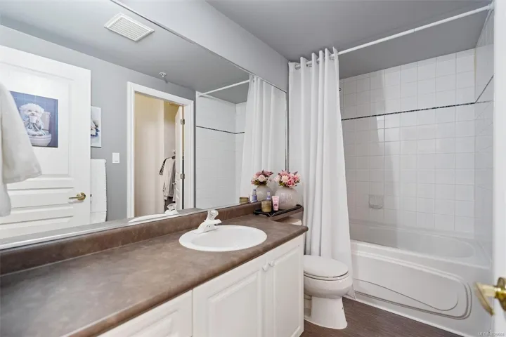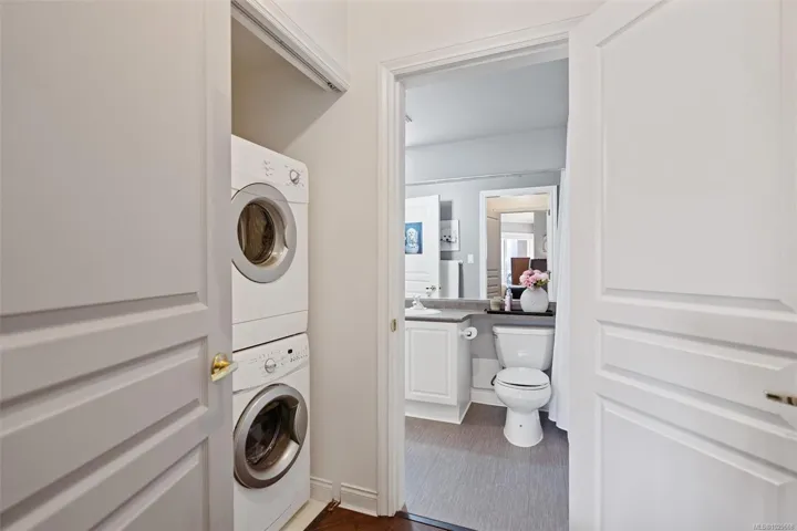 Southwest-facing residence in the sought-after Polo Pacific, ideally located just one block from Victoria’s Inner Harbour. Enjoy a highly walkable lifestyle with easy access to downtown amenities including restaurants, cafés, shopping, the waterfront, and transit. This bright 1 Bed, 1 Bath suite offers a functional layout with excellent natural light throughout and a private southwest-facing balcony with afternoon sun and distant views toward the Sooke Hills. The open living and dining area flows seamlessly from the kitchen, creating a comfortable and practical living space. The generous bedroom features balcony access, a walk-in closet, and in-suite laundry, with space for a home office or reading nook. Polo Pacific is a well-managed building offering secure underground parking, separate storage, beautifully landscaped grounds, and two guest suites. Rentals and pets allowed – ideal for a primary residence, investment, or Victoria pied-à-terre.