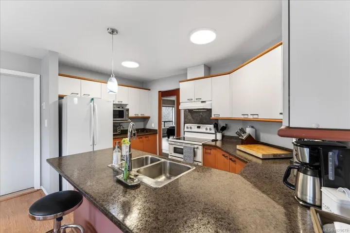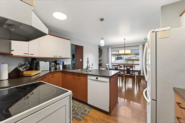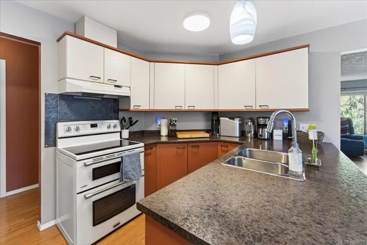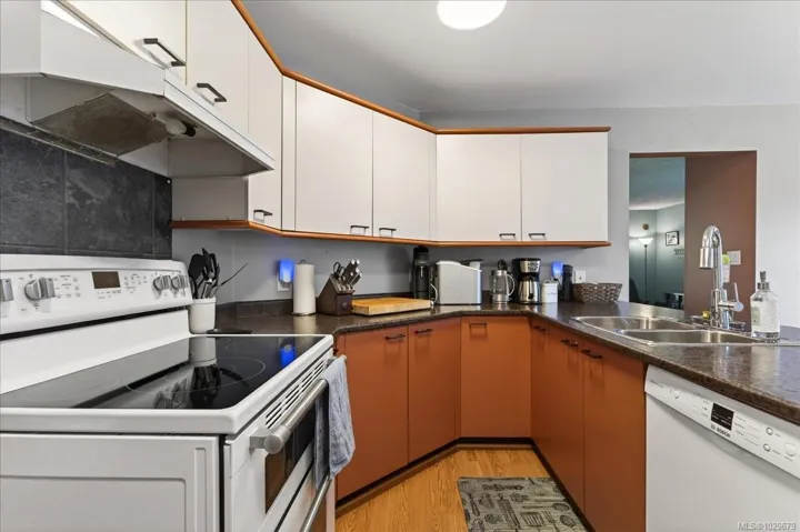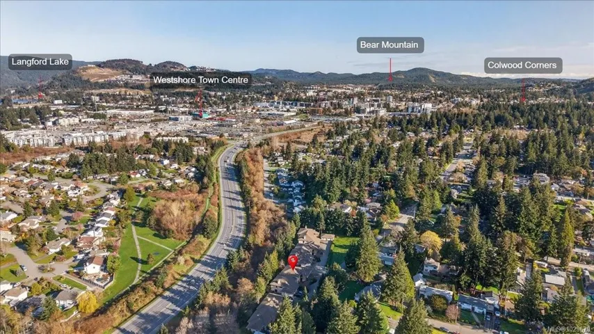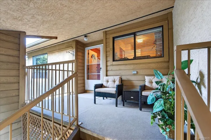 Tucked away in a quiet, well-managed, beautifully maintained 3+ acres of park-like grounds, this centrally located townhome offers privacy & convenience. This single-level home features 1,400+/- sq. ft. of thoughtfully designed living space, including 2 beds & 2 baths. Bright Kitchen with a breakfast bar, seamlessly connecting the dining area to a spacious living room complete with a cozy propane fireplace. Step outside to your own private deck—ideal for morning coffee or summer BBQs. The generous primary suite easily accommodates a king-sized bed & features a walk-in closet, & a 4-pcs ensuite. Additional highlights include a single-car garage, ample storage, & a functional laundry/mudroom. This well-run strata offers on-site RV parking & beautifully landscaped grounds. Updates include new roofs (2022) & a new control panel for the septic system. Located steps to Westshore Centre, Belmont Market, transit & all everyday amenities. Quick possession possible