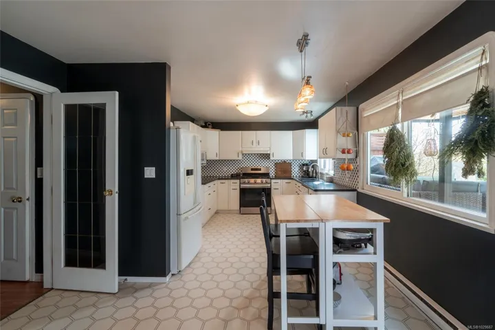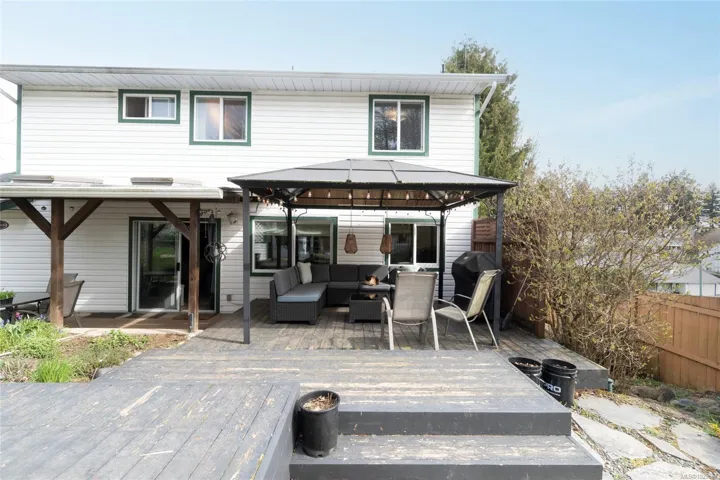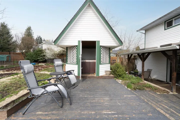 Welcome to this charming and well-maintained family home in a quiet, established Sooke neighbourhood. Set on a sunny 0.2 acre lot, this 4 bed, 3 bath home offers comfort, space, and West Coast lifestyle. The bright living area features large windows and a cozy gas fireplace, often used as the primary heat source. The spacious kitchen offers updated flooring and plenty of room to gather. The primary bedroom includes a walk-in closet and private ensuite. Thoughtful updates include newer windows, updated flooring, carpet, fresh paint, 200 amp service, improved fireplace and chimney insulation, gas stove, hot water tank, and garage opener. Outside, enjoy a beautifully maintained yard with garden beds, fruit trees, fish pond, chicken coop, workshop, hot tub, double garage and ample parking. Walkable to parks and the Sooke core. This property offers a rare opportunity to enjoy space, versatility and lifestyle in Sooke’s most welcoming neighbourhood.