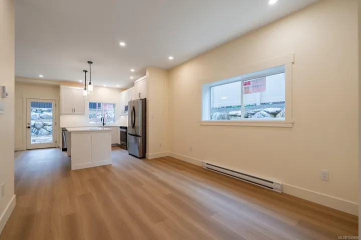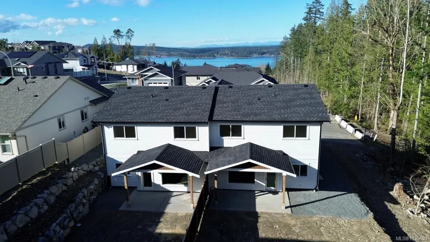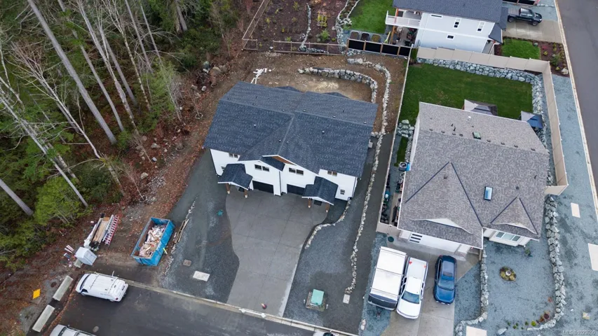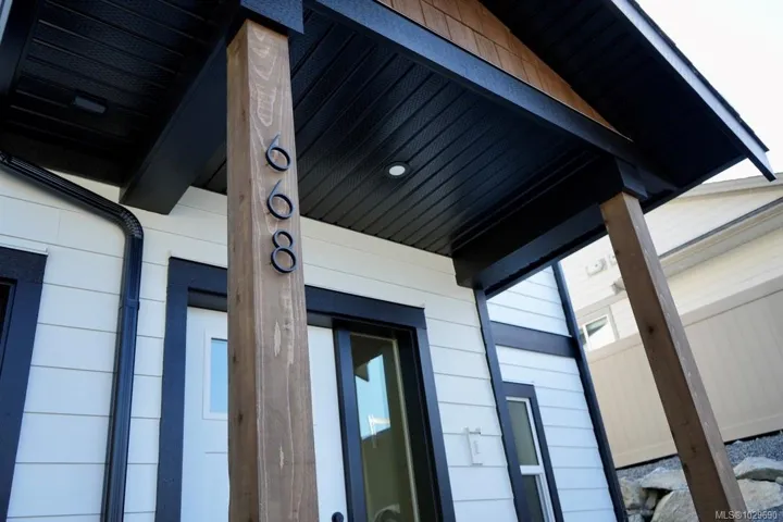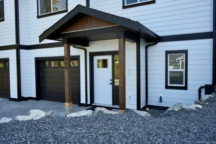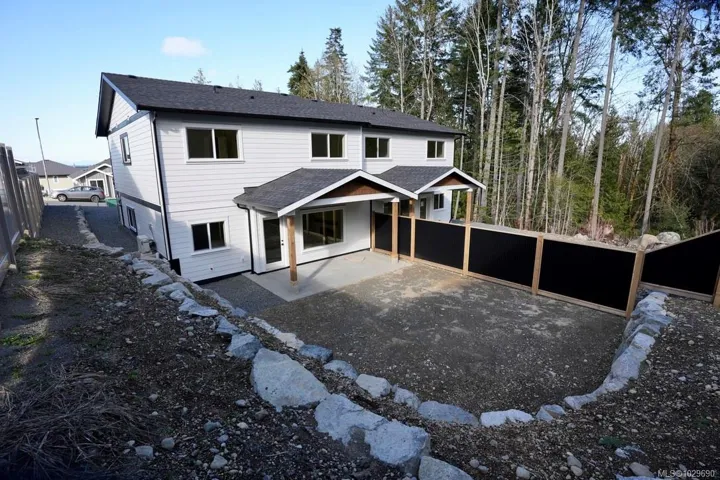 Stunning new half duplex at 668 Sanderson Rd in Ladysmith, offering 3 bedrooms and 3 baths with beautifully curated interior design—and no strata fees. The main floor features a bright, open-concept layout flowing from dining to kitchen to living space. The modern kitchen includes a large island with quartz countertops, stainless appliances, ample cabinetry, and a spacious pantry. The living area opens to a covered patio and a larger-than-typical private yard in a quiet, established neighbourhood. Upstairs, the impressive primary suite boasts a 7’x10’5” walk-in closet and dual-sink ensuite with in-floor heat. Two additional bedrooms, a full bath, laundry, & a versatile flex room complete the level. With peekaboo mountain views, quality finishes, extra garage storage, an attached garage, and a ductless heat pump, this home offers modern comfort for every buyer. Price plus GST. All measurements are approx, please verify if deemed important