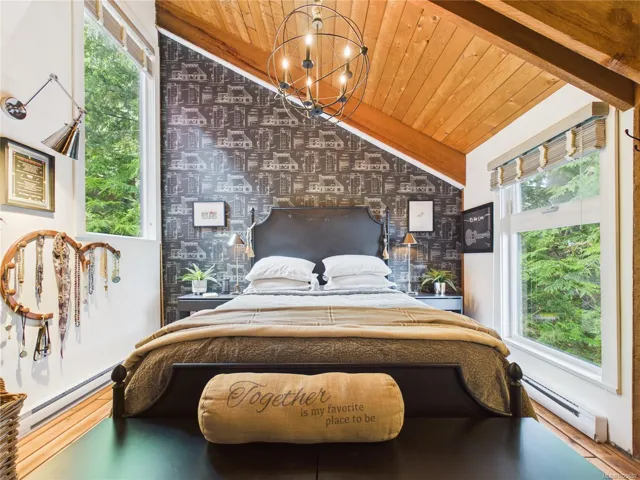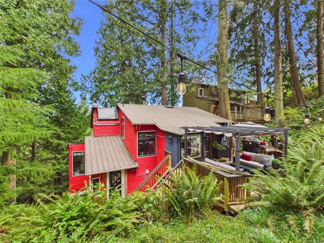 Tucked into the forest at the end of a quiet cul-de-sac, this architecturally inspired West Coast home offers privacy, design, and lifestyle just minutes from Ganges Village. The unique design details are for those who love nature and west coast lifestyle. Featuring refinished 2” Douglas fir flooring, a modern linear fireplace, and vaulted ceiling open to below. The kitchen includes added cabinetry for additional storage and extensive use of authentic wood finishes, flowing into bright living spaces and expansive decks with full ocean views. The lower level offers flexible living with a family room, bedrooms, and a walk-in closet (convertible back into a third bedroom if desired). Outdoor features include a cedar staircase, kitchen, firepit, and lit pathways. Set on 1.7 acres with no shared walls. Furnishings are negotiable and may be included for a turnkey purchase.