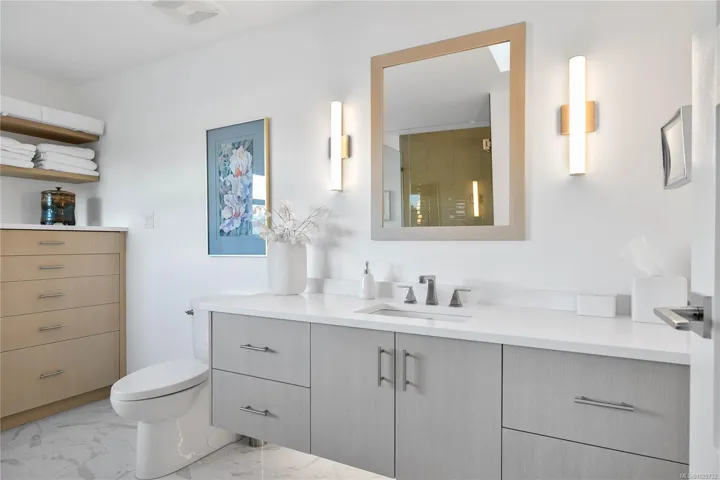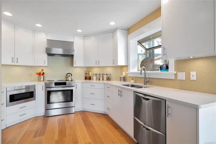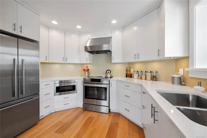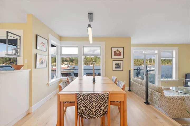 An exceptional oceanfront residence at Grace Point, one of Salt Spring Island’s most coveted waterfront enclaves. This rare offering has been exquisitely renovated, blending timeless elegance with contemporary design. The 2 bed, 3 bath layout features a refined open-concept living and dining area, ideal for elevated entertaining. Modern kitchen offers premium appliances including Fisher & Paykel double dishwasher and Bosch oven with induction cooktop, paired with custom finishes throughout. Two private oceanfront terraces—one on each level—capture the best views of harbour life. Refinished oak floors with flush vents, curated lighting, all new windows and blackout blinds enhance comfort and sophistication. Primary upper level suite boasts a luxurious ensuite, walk in closet and built-ins. In the heart of town, yet distinctly private. Walking access to restuarants, shops, float plane, and a private marina for your boat. An effortless, lock-and-leave waterfront lifestyle.