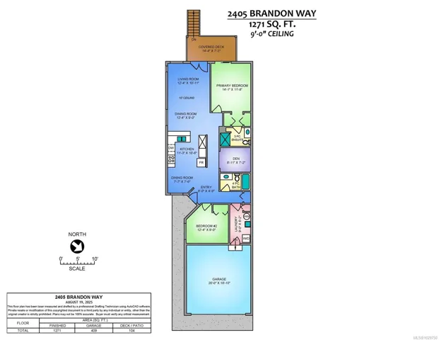 Well priced 1271sf, 2 bedroom and den patio home close to parks, shopping, and bus routes. This popular pet-friendly development was constructed in 2011 and has many modern features such as laminate flooring, contemporary light and plumbing fixtures, and an open plan for the dining, living, and peninsula kitchen. With 10′ ceilings and French doors and a corner window onto the covered rear deck, natural light will add year-round warmth. The primary bedroom offers a walk-through closet into a 3 piece (shower) ensuite. The 2nd bedroom is ideal for guests and a den gives you that coveted extra space for a ‘work from home’ need or simply a space for your TV, computer, or gym equipment. The laundry room flows through to the impressive 20′ x 18’10” double garage. The home features an over height crawls space, ideal for the extra storage every household desires. All measurements are approximate and should be verified if important.