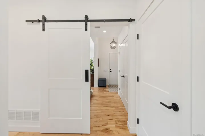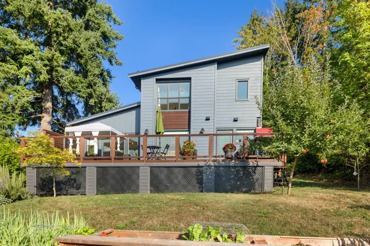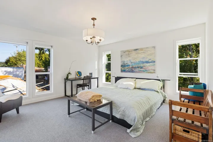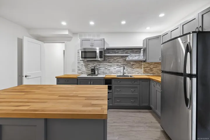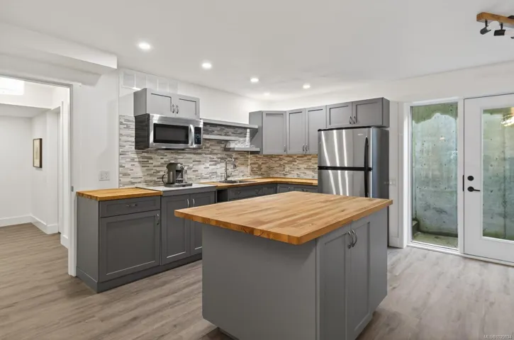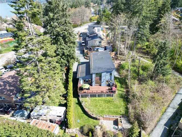 The covered entrance welcomes you into this architecturally designed home. The Vaulted living room is filled with natural light that creates a wonderful, welcoming space. Flowing through the dinning room, with its huge picture window to the Kitchen. The kitchen features butcher block counters, a large central island and access to the entertainment sized rear patio. This west facing patio overlooks the fully fenced back yard, with fruit trees and very productive garden beds. The entire south side of property runs along a natural green space. The spacious primary bedroom is a relaxing space with a private roof-top patio, as well as a 4 pcs ensuite and walk-in closet. There are two additional bedrooms on this level, complemented by a 5 pcs bath. Downstairs has a separate entrance to a complete one-bedroom unit that makes the perfect Airbnb or mortgage helper. This is an excellent home is a highly desirable Cowichan Bay neighbourhood.