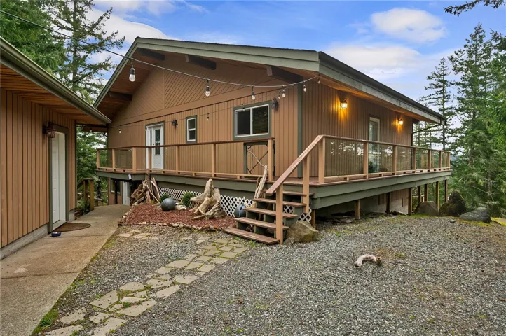 Custom Whiskey Point home with self contained 2 bedroom suite & detached garage! This main level entry home lives like a rancher. 2 spacious bedrooms on the main floor mean that this is a home you could grow old in! The open loft on the upper level has plenty of room & could be used as an office space or another bedroom. You will love the cathedral ceilings & wall of windows that create a feeling of grandeur in the main living area. The wraparound deck is perfect for summer entertaining. The custom kitchen boasts soft closing drawers, stainless steel appliances & large island. The lower level of the home has a fully self contained recently renovated 2 bedroom, 1 bathroom suite. The detached 2 car garage is steps away from the home. The home & garage are situated on a 0.99 acre lot with partial south facing ocean views, in a low maintenance bluff setting. Located in an area of newer homes, within walking distance from shops/services in Quathiaski Cove and the ferry to Campbell River.