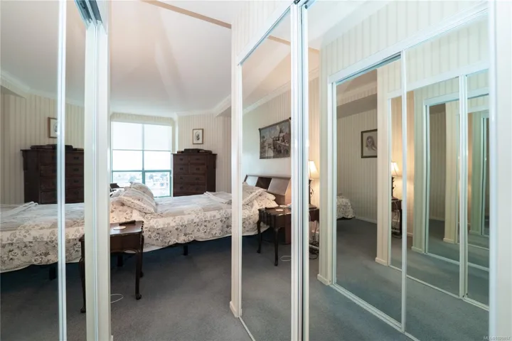 Built in 1992 as the City’s Prestigious ‘Regents Park’ offering the finest Steel & Cast in place concrete construction and quality finishings with 8’6″ ceilings, award winning spacious design, the finest in amenities, with incomparable views and location. Considered the best view offered of both towers this unit directly faces south with 180 degree views incorporating East and West exposure as well. View on a clear day and the Ocean & Olympic Mountains will take your breath away. Unique because this view is unlikely to change as primarily new builds already in place. The layout offers exceptional space and separation with bedrooms at either end and spacious open living/dining great for entertaining. The kitchen has a separate eating area to sip your morning coffee with the best views in town. The primary bedroom offers views, walk through closets and 3pc ensuite. There is an actual laundry room and space for all your furniture. Yes there are plans to revitalize the exterior to new.