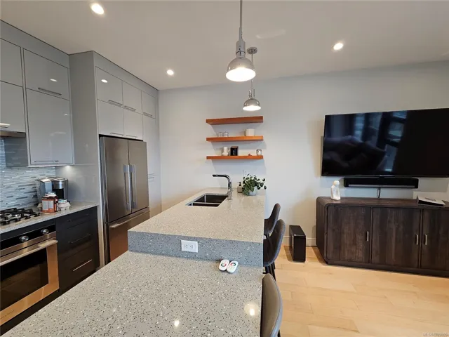 Welcome to The Wade, one of Victoria’s luxury residences. This steel-&-concrete building showcases thoughtful, modern design & the latest in contemporary technology. This two-bedroom, two-bath home offers an excellent floor plan, featuring wide-plank hardwood flooring throughout, artisan-crafted countertops, & handmade glass tile. Enjoy the convenience of in-suite laundry, Lutron-controlled lighting, a gas stove, & top-of-the-line Fisher & Paykel appliances. Residents can take advantage of a generous courtyard with fruit trees and edible plantings, thoughtfully designed for outdoor living, as well as a rooftop leisure area complete with barbecue, sauna, and shower facilities. Individual garden plots are also available for resident use. Secure underground parking including designated visitor stalls, a separate storage unit, bike storage, pet-friendly and walkable location. Ideally located within strolling distance of cafés, shops, markets, & parks. You really can have it all downtown!