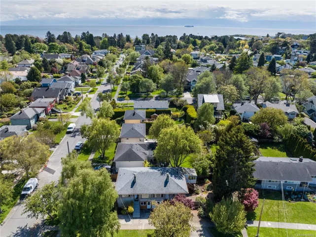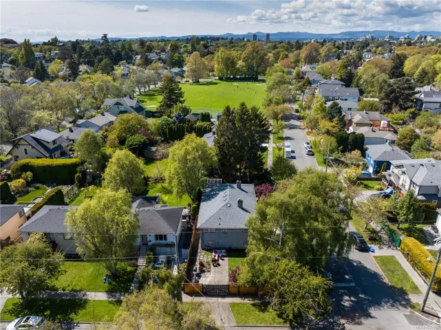 Fairfield friendly! Steps to excellent schools, shops & the ocean, this 3 bedroom, 2 bath duplex is perfectly located in this fabulous neighbourhood. Boasting a gorgeous, fully fenced corner yard the character home has oak floors & coved ceilings, a testament to the 1950’s. There is an attractive stone fireplace, mahogany mantel & electric insert in the living room. The separate kitchen is pre-wired for a wall oven & enjoys views over the backyard. The flexible layout offers 2 ample bedrooms & a bathroom on this level. The lower level can easily be converted to a 1-bed suite & it is plumbed for a kitchen. The huge laundry room has newer appliances & tons of space for storage. There is updated lighting throughout the house plus an alarm system. Perimeter drains & the roof were replaced approximately 15 years ago. A unique opportunity to enter a coveted neighbourhood. Take advantage of the government grant programs for suite conversions & heat pump upgrades!