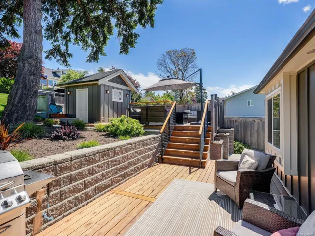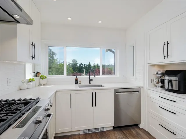 Stunning WATERVIEW home with the Gorge waterfront park directly across the street. Prepare to be impressed! Must see; Virtually every inch of this this lovely home and property has been professionally updated from the roof down to the perimeter drains. Bathed in natural light this home features a beautiful water view kitchen with quartz counters and stainless appliances, impressive use of built ins with custom millwork throughout, on demand hot water, and a modern Valor natural gas fireplace. 3 bedrooms in the main house including primary with 3 piece en-suite. BONUS: one bedroom SUITE with a separate entrance! Beautiful back yard retreat with multiple patios, entertaining areas and a 10×10 storage shed with power (future home office?). Truly a special location where you can launch your kayak across the street!