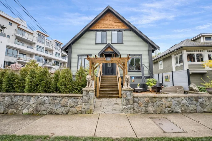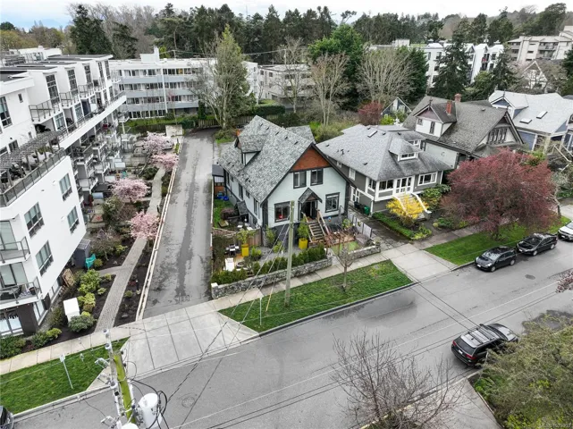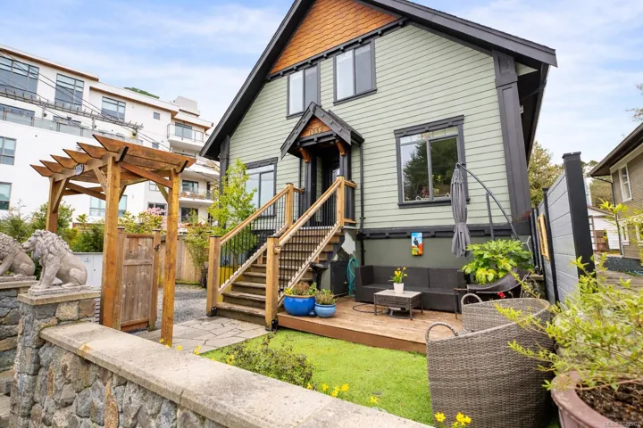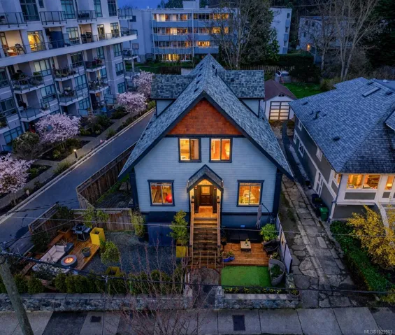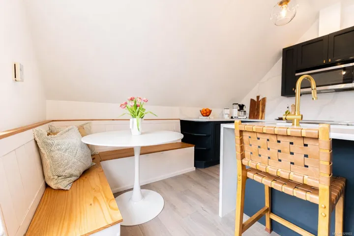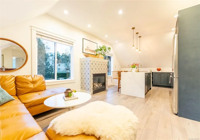 A rare top-floor character conversion in the heart of Cook Street Village. This renovated 2 bed, 2 bath home blends timeless charm with modern design, offering a bright and airy 981 sq.ft. interior plus an exceptional private outdoor space. Inside an updated open-concept living area featuring a stylish kitchen with quartz countertops, stainless steel appliances and a generous eat-in island, perfect for cooking and entertaining. The living room is anchored by a custom-tiled gas fireplace, creating a warm and inviting atmosphere, while the adjacent dining area is ideal for everyday living. The Primary retreat offers a walk-through closet, spa-inspired ensuite and flexible space. A second well-sized bedroom and full bathroom provide excellent versatility. Step outside to your private, fenced yard, an urban oasis with almost 500 sq.ft. of outdoor living space. Located just steps from Cook Street Village, Dallas Road, Beacon Hill Park, cafes, restaurants, and shops.
