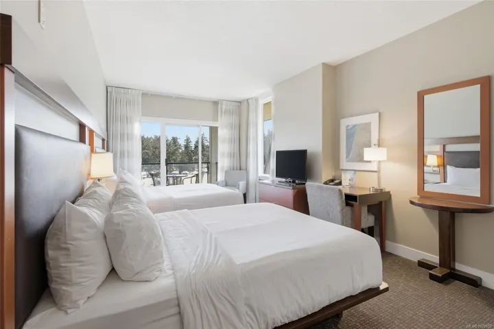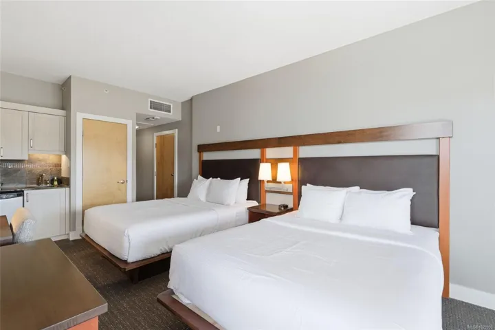 Own your piece of paradise at the award-winning Beach Club Resort in Parksville. This 4th floor, 335 sq ft ocean view studio offers a 1/4 share, giving you one week per month to enjoy Vancouver Island’s stunning sandy beach and famous low summer tides. There are two queen beds, kitchenette services and one bathroom with a bathtub/shower combination. Luxurious finishings in this turnkey suite lets you relax or generate income through Bellstar’s professional rental pool (GST number required). Enjoy resort-style amenities including indoor pool, hot tub, fitness centre, spa, Pacific Prime restaurant, underground parking, and EV charging. Located steps to the waterfront Community Park, summer festivals, golf, and all local amenities—this is the perfect getaway and investment in one.