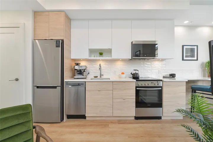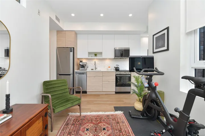 Welcome to THE PEARL Victoria’s New Waterfront residence in Old Town Victoria. 2023. Quality steel and concrete built by awarding winning team of D’Ambrosio Architects, KWI Design & Farmer Construction. An urban oasis offers exceptional quality, modern elegance & city views with brilliantly and functionally designed Junior 1 Bed, 1 Bath, 464sf and 9 ft. ceilings. Amazing natural light with SE exposures, spacious balcony with vibrant street views, exquisite finish details including custom upgraded Murphy Bed, quartz counters including eating bar/work desk, top of line appliances, in-suite laundry, heated tile floor and AC. Secure storage locker along with building amenities including caretaker, gym, bike storage, common room with kitchen facilities and a most welcoming and eleganat lobby. Front & centre on Victoria’s active waterway & walkways, a hidden gem immersed in the rich history known for picturesque streets, shops & dining. A walkscore of 99 with a signature address you deserve!