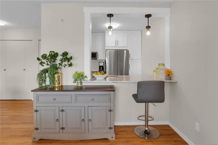 Welcome to 4971 Songbird—an ideally located 873sqft condo in popular Uplands neighborhood offering exceptional convenience & lifestyle. Bright & cheery with lovely views of Mount Benson. Recently renovated kitchen with stainless steel appliances. Laminate & tile flooring. Sunny, West-facing covered balcony. Leave the car at home – in your underground parking spot! Everything you need is just steps away. Walk across to North Town Centre Mall with all the nearby shops, Fairway Market, movie theatre, gym, restaurants, medical, dental, physio or head over to Oliver Woods Community Centre. In-unit laundry. So much storage in a spacious storage room/den & large closets. Visitor parking, car washing spots, elevators & accessible entrance. Rentals allowed. No age restrictions. 1 small dog under 30 lbs & 16″ height or 1 cat welcome. Whether you’re downsizing, investing, or seeking a low-maintenance lifestyle, this home truly delivers unmatched walk-scores & value. All measurements approximate.