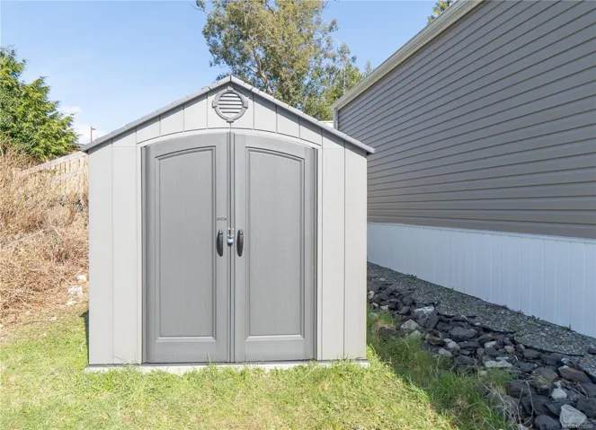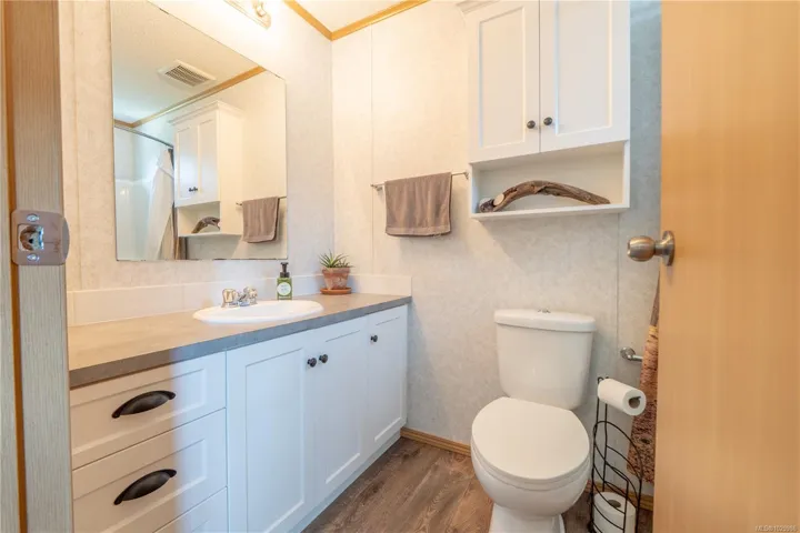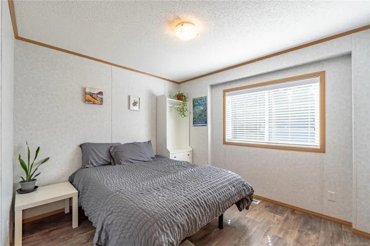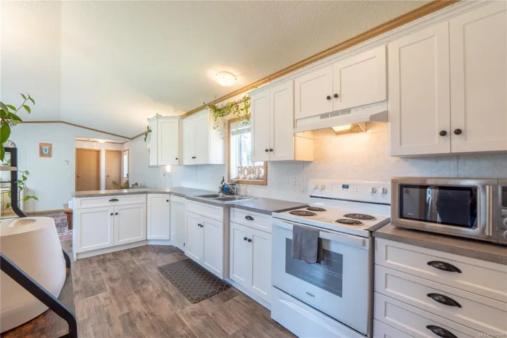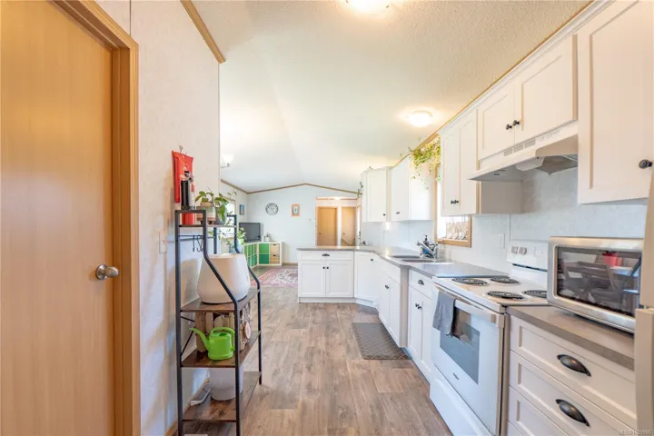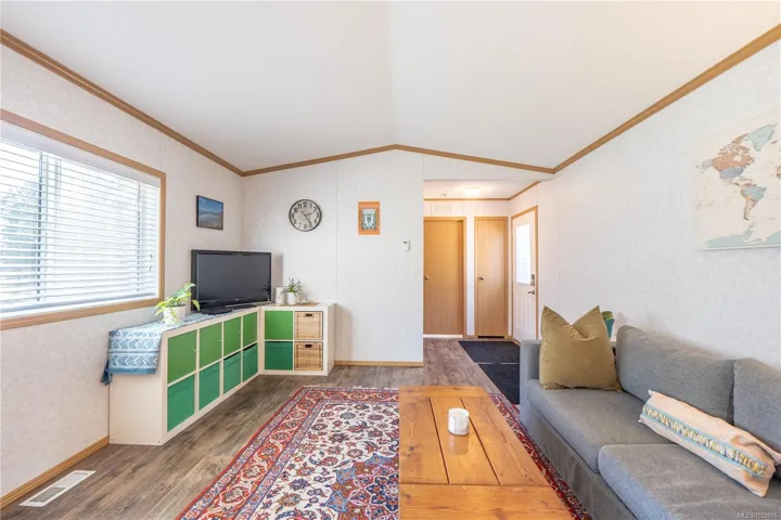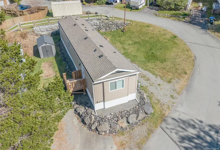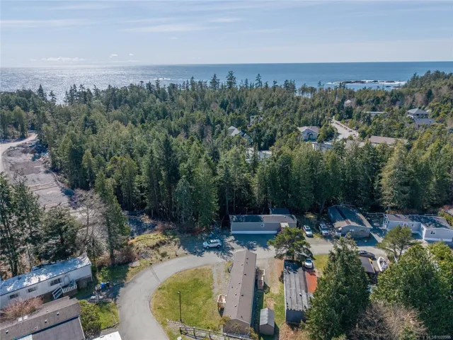 Like new modular home at Whispering Pines. Sunny 2-bedroom 2 bath home located at the end of a crescent. Most windows are south facing affording plenty of natural light in the open concept living areas with vaulted ceilings. Kitchen with L-shaped counter, pantry & plenty of cabinet space. Separate laundry room, accessed from kitchen, with secondary entry/exit & sunny deck. Main bedroom features large soaker tub & walk-in closet, second bedroom at opposite end of home with adjacent bathroom. Easy care linoleum flooring throughout & high efficiency electric furnace. Exterior entry crawl, plus shed on concrete pad provide extra storage room. Trail access across street to Marine Drive with proximity to Big Beach & Wild Pacific Trail. Excellent starter or retirement home, or this property also lends itself nicely to a roommate situation with space for parking on either side of home. Possibility for expanding yard/garden space with Manager approval.
