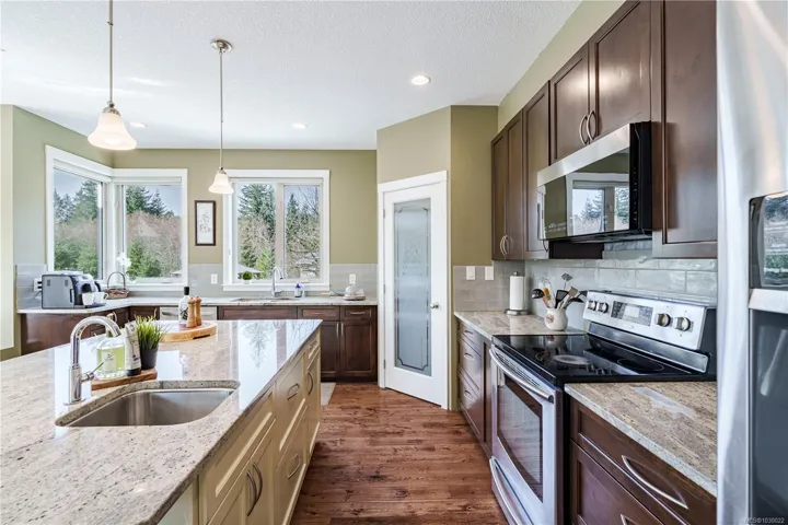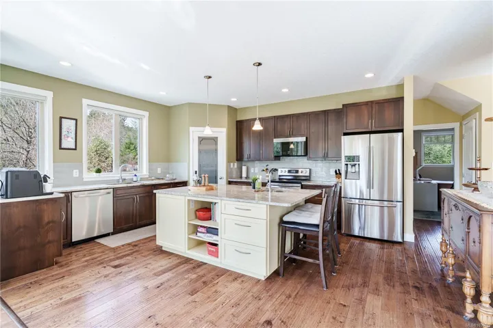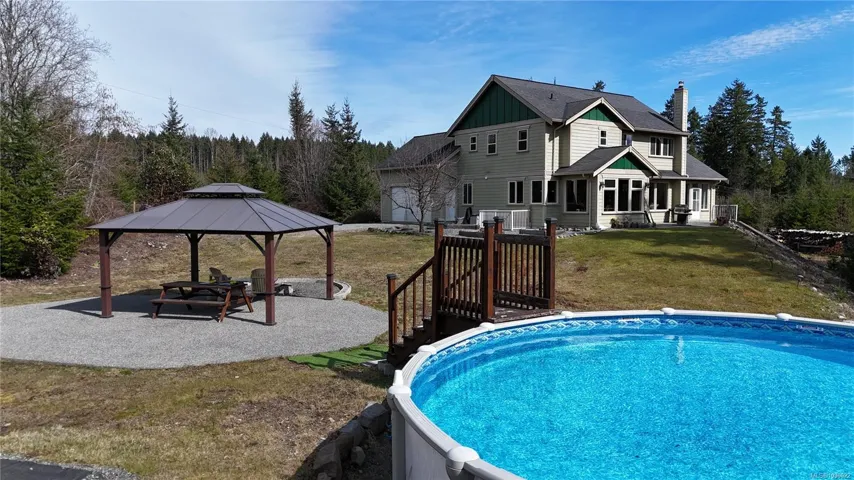 Experience executive country living just minutes from Nanaimo. Set on 5.3 private acres in South Forks Estates, this 4,120 sq.ft. estate is the ultimate lifestyle upgrade. Step into the grand foyer, beautifully open to the above, flowing into a living room framed by stunning wall-to-wall windows. The dream gourmet kitchen features a pantry, a large central island, and granite countertops —an inspiring space perfect for family gatherings. The layout boasts 6 bedrooms and 5 bathrooms, including a luxurious main-level primary suite with a spa-style ensuite. The lower level offers a separate entrance with suite potential. Outside, enjoy a true “staycation” lifestyle with an above-ground pool, pickleball court, and sauna. A rare blend of acreage privacy and city convenience. Measurements approx. Buyer to verify. OPEN HOUSE SAT April 4. 1-3 PM