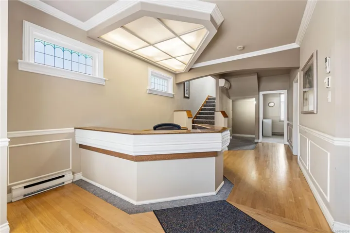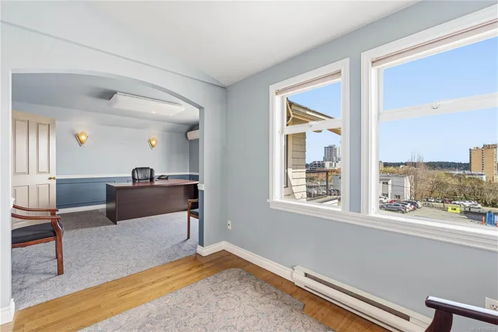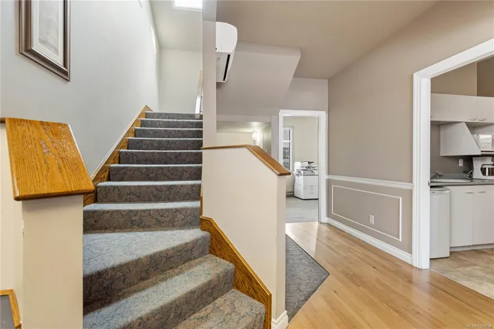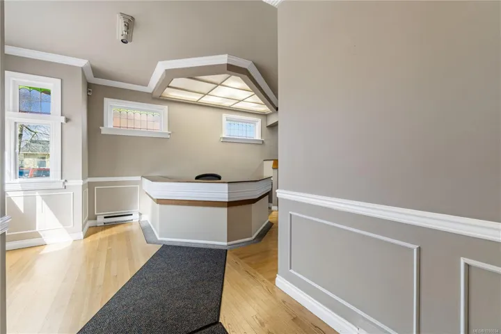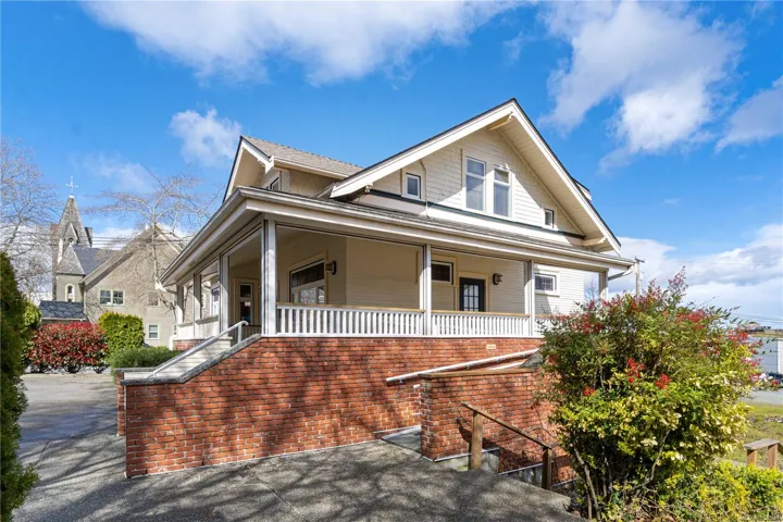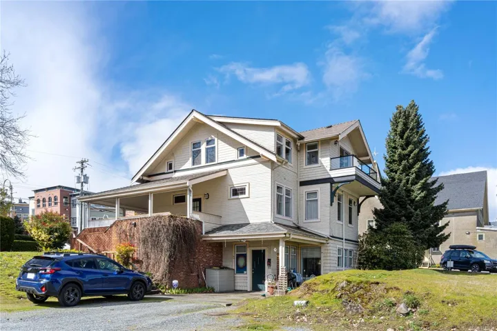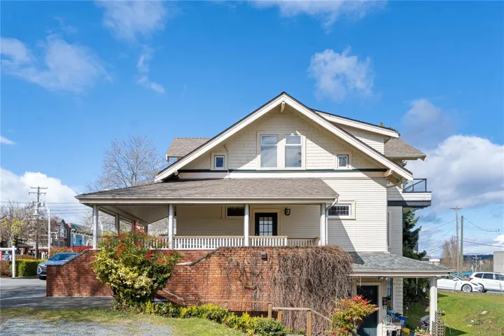 Impressive commercial office building with exceptional curb appeal in the heart of Old City, located on Wesley Street—widely regarded as Nanaimo’s hippest corridor—just steps to restaurants, shops, City Hall and the waterfront. Ideal for accountants, lawyers, engineers and financial consultants, the well-designed main level offers reception, client seating, 6 private offices (total both floors) and lunch area, plus a fully self-contained 2-bedroom caretaker suite below. Excellent street exposure highlights the character, complemented by a covered front deck with wheelchair access. On-site parking for 4 vehicles plus ample street parking. Surrounded by additional parking lots that may offer future assembly potential, enhancing long-term value. Zoned DT2 for a wide range of commercial and residential redevelopment options. Rare live/work opportunity suited to professionals, including those commuting to/from Vancouver. Measurements approx; verify if important.