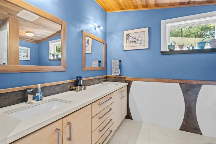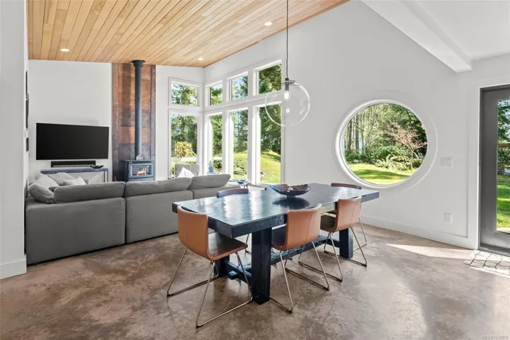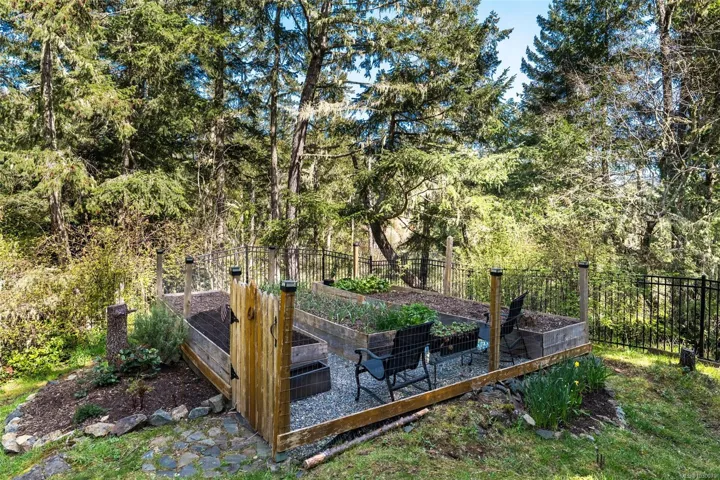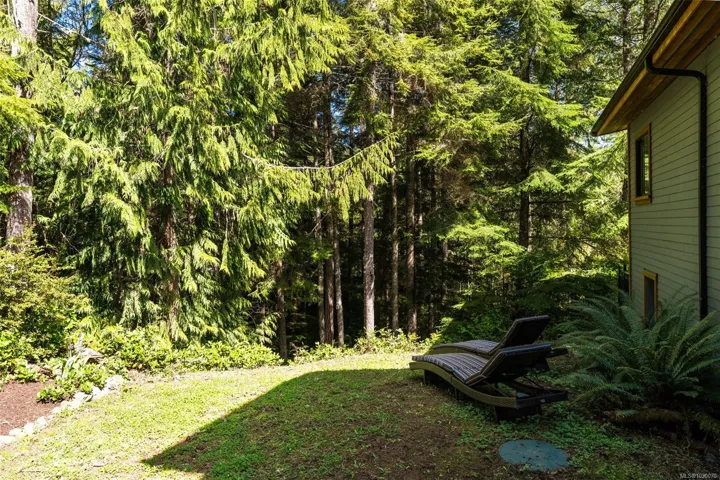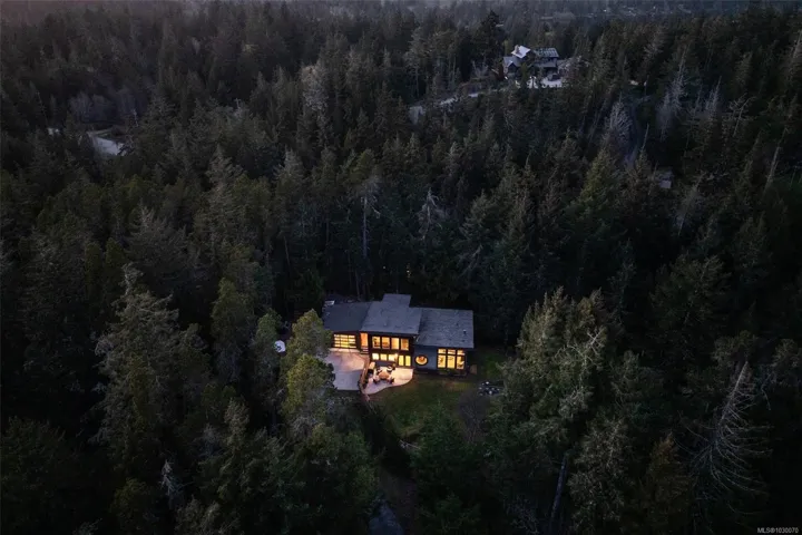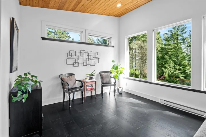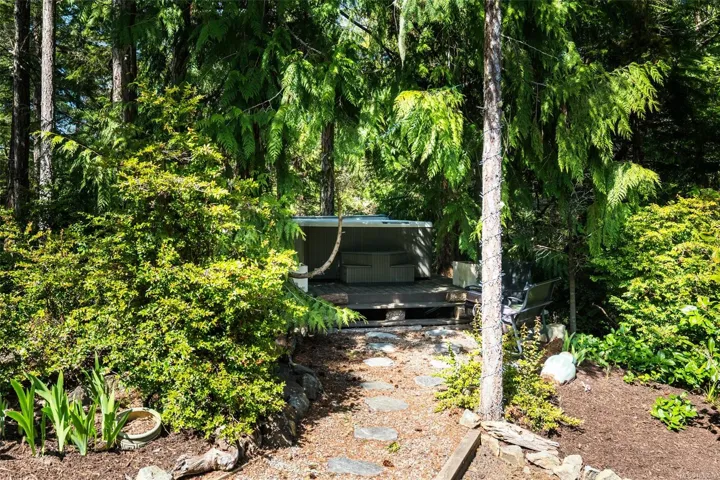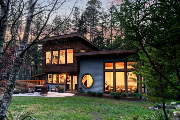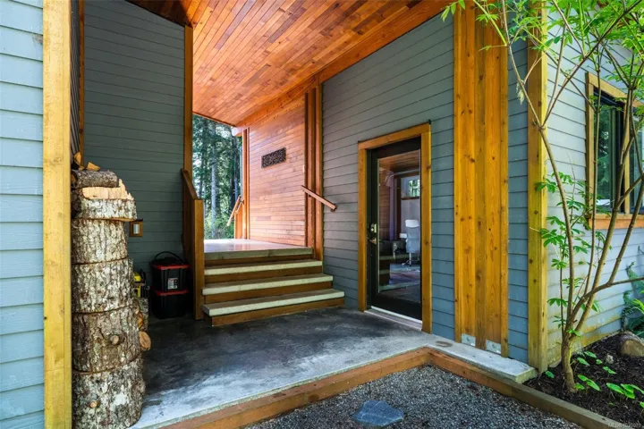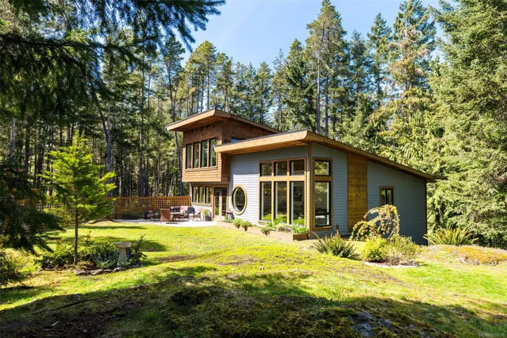 THE FINEST IN LUXURY WEST COAST LIVING! Architecturally inspired & impressively finished West Coast Contemporary 3 bed + office, 2 bath, 2,109sf home on private, beautifully forested & masterfully landscaped estate. Be impressed w/the polished concrete floors (in-floor radiant heat), plethora of custom finishing details, use of natural materials & abundance of light enhanced by airy vaulted ceilings. Gourmet kitchen w/oak cabinetry, quartz counters/island & SS Bosch appl. Dining area opens thru french doors to patio. Living rm w/floor to ceiling windows & cozy wood stove. 2 generous beds w/oak floors, 4pc bath & laundry complete main lvl. Up:primary w/new oak floors, w-i closet, 4pc ensuite & forest views/ocean glimpses. Garage connected by breezeway is finished & perfect for office or gym. Huge basement/crawlspace(6’10”-0’ht).Beautiful yard w/custom fencing, garden beds, shrubs & flowers + hot tub! A rare find!(Lotsize=”Private Yard Area”+bldg footprint from Strata Plan)