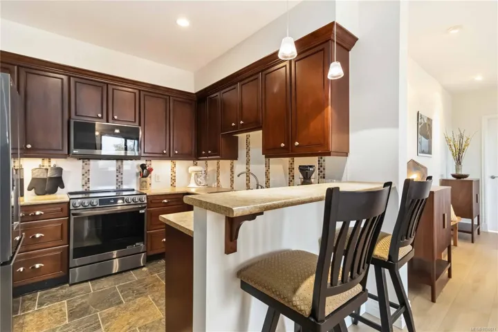 Welcome to Pond’s Landing in the desirable Bear Mountain community. This immaculate 2 Bed plus Den, corner suite offers one of the largest floor plans in the building, enhanced by 9-foot ceilings, abundant natural light and 2 fabulous outdoor patios. The open-concept living area features new wide plank flooring and a spacious chef’s kitchen with brand-new stainless steel appliances. Fresh paint throughout gives the home a crisp, modern feel.