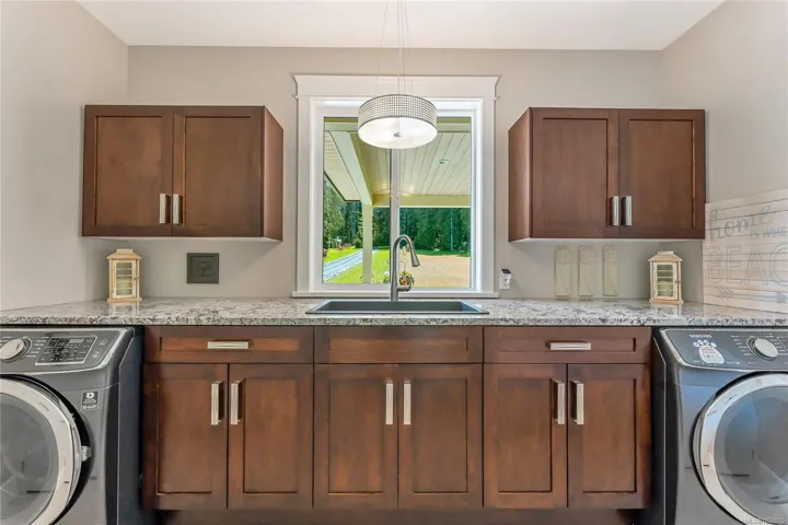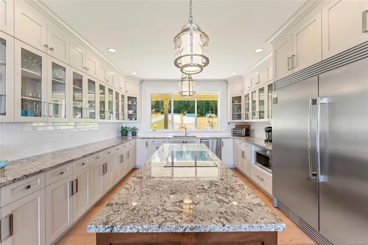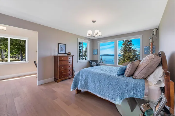 Architecturally designed, oceanfront luxury home awaits you on Vancouver Island. 4.8 peaceful acres of unobstructed waterfront /w beautifully landscaped vistas. Entering into the grand foyer you will naturally flow into the stunning living room with coffered ceilings, Turkish stone fireplace and unbelievable ocean views. The kitchen boasts high end SS appliances, custom maple cabinetry & granite which continues throughout the entire home including the oversized 3 bay garage. The stunning primary bedroom on the main floor has an extensive ensuite, spa-like shower, free standing tub, & chandeliered custom walk-in closet. Upstairs leads you to the sitting room /w walk out private sundeck and 2 expansive luxury bedrooms /w ensuites, 1 /w gym area & office, the other /w private, hidden spa. In the park-like setting, the 900 sq ft custom studio could easily be transitioned into your guest cottage. You simply will not find the peace, tranquility, & luxury of this one of a kind property.