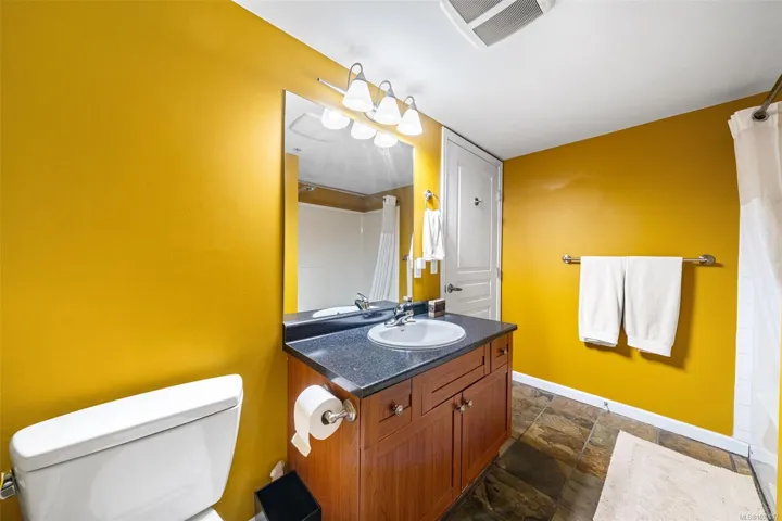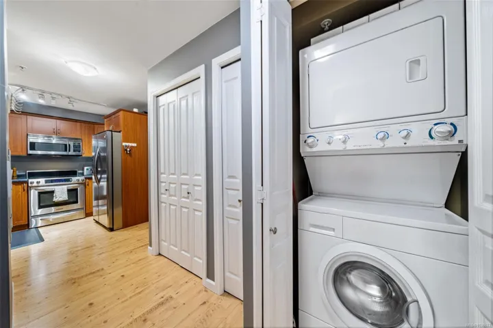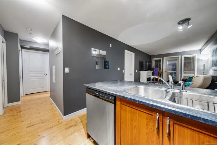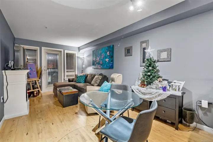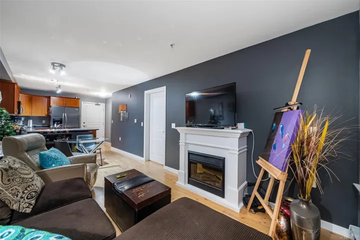 Immediate Possession Available!Exceptional value awaits at McConnell Place West! Set on the quiet side, this bright 1 Bed + Den offers an efficient layout with a spacious primary suite and a versatile den that serves as a second bedroom or dedicated office. The open living area features a cozy electric fireplace and access to a private balcony, perfect for enjoying the morning sun. The kitchen boasts quality stainless steel appliances, an eating bar, and ample in-suite storage. The primary suite features a convenient cheater ensuite with stylish slate floors. Amenities elevate the lifestyle: secure underground parking, storage locker, gym, rec room, and a rooftop balcony. This is a true pet-friendly haven, allowing up to two small dogs, a rare and coveted strata feature! The location is phenomenal: close to Royal Colwood Golf Course and steps to shops, restaurants, and groceries, or bike the nearby Galloping Goose Trail. An amenity-rich, smart investment in a prime Langford location!
